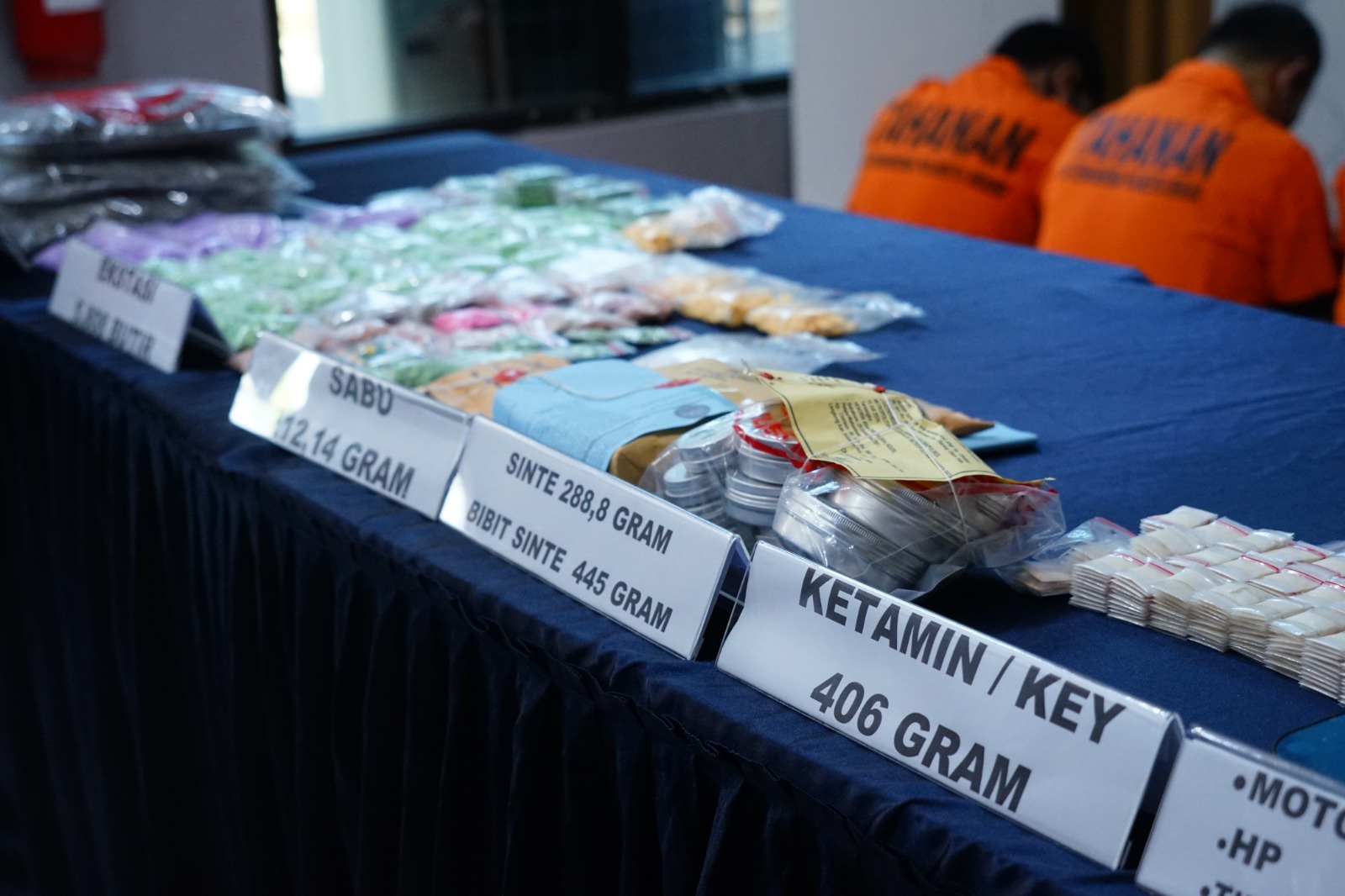 Dalam Konferensi Pers, Kapolres Metro Bekasi menjelaskan bahwa dalam operasi tersebut, pihak Kepolisian berhasil mengamankan sejumlah barang bukti, yaitu Sabu : 212,14 Gram, Ganja : 529,87 Gram, Sinte : 288,8 Gram, Bibit Sinte : 445 Gram, Ekstasi : 5.808 Butir, Obat Ketamin : 406 Gram, Motor : 1 Unit, Hp : 11 Unit, Timbangan Elektrik : 5 Buah Jika diakumulasikan dalam rupiah barang bukti seluruhnya setara dengan kurang lebih Rp. 7.073.242.545,- (Tujuh Miliyar Tujuh Puluh Tiga Juta Dua Ratus Empat Puluh Dua Ribu Lima Ratus Empat Puluh Lima Rupah).