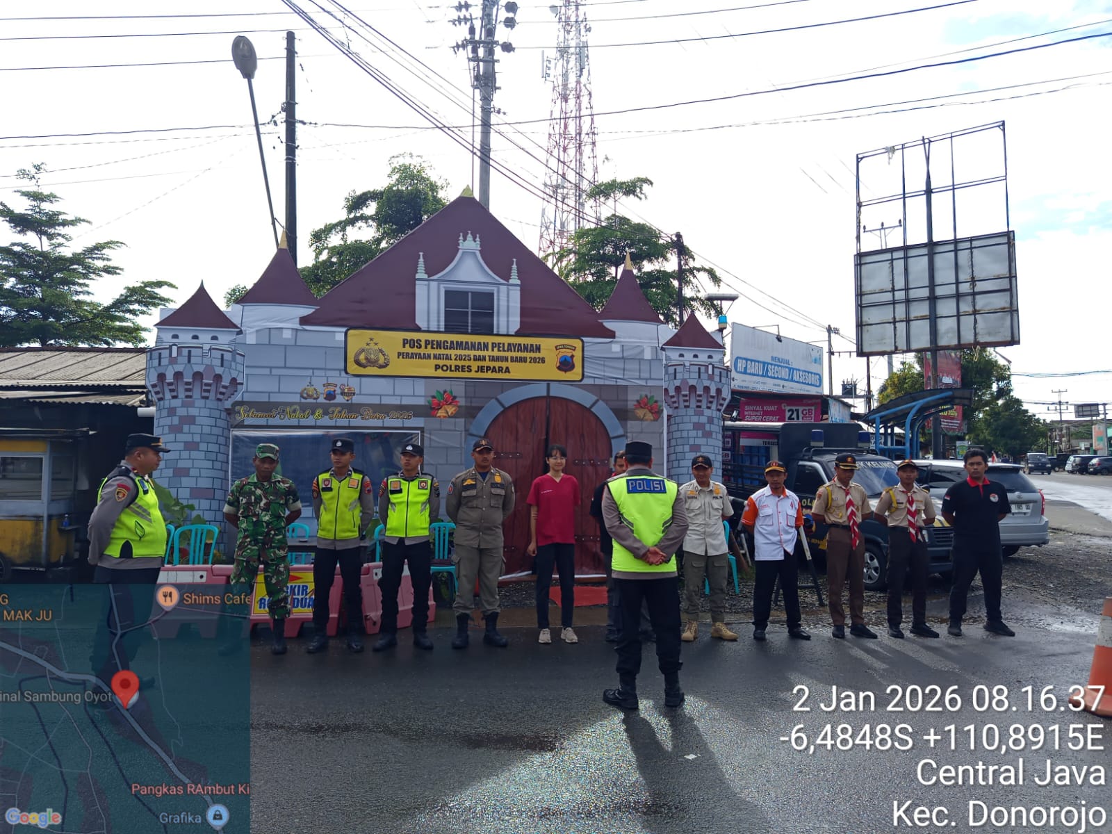 JEPARA, sidikkriminal.co.id – 02-1-2025 Dalam rangka mendukung kelancaran dan keamanan perayaan Natal 2025 dan Tahun Baru 2026, anggota Koramil 08/Keling, Serka Nursidi bersama Koptu Nono, melaksanakan kegiatan pengamanan Pos Pelayanan (Posyan) di Pos Sambung Oyot.