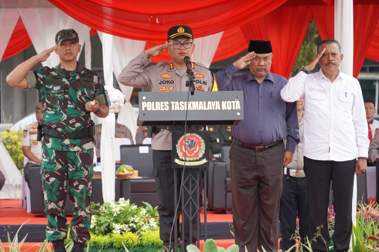 Kapolres Tasikmalaya Kota AKBP Joko Sulistiono, S.H., S.I.K., M.H., pimpin langsung apel gelar pasukan bersama stakeholder terkait seperti Forkompimda, TNI dan unsur terkait lainnya.