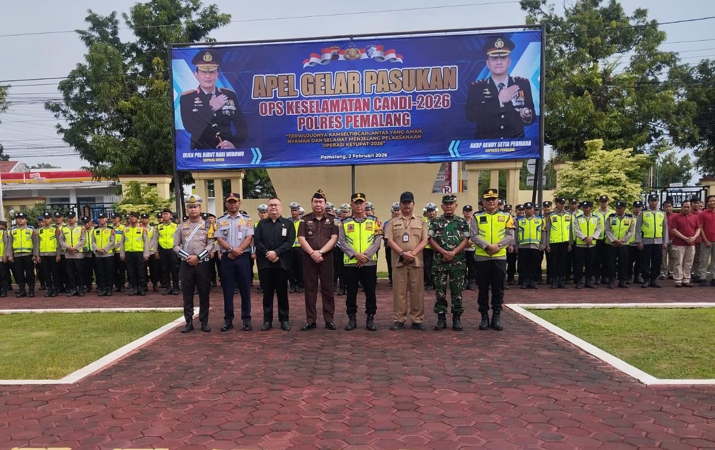 Pada hari Senin Tanggal 2 Februari 2026 Pukul 08.05 s.d 08.45 Wib bertempat di Halaman Mapolres Pemalang Jl. Jendral Sudirman Timur No. 25 kelurahan wanarejan selatan Kec Taman kab Pemalang telah dilaksanakan kegiatan Apel gelar pasukan ops keselamatan candi – 2026 Polres Pemalang dengan Tema” Terwujudnya kamseltiblantas yang aman nyaman dan selamat menjelang pelaksanaan operasi ketupat – 2026.” adapun yang berti dak sebagai Pimpinan Apel AKBP. Eko Sunaryo, S.I.K.,M.K.P. Kapolres Pemalang dan sebagai komandan apel Ipda Slamet Satrio, S.H. KBO Satlantas Polres Pemalang dengan Pimpinan Kompol Eddy Purnama Lilah S.H., M.H. Wakapolres Pemalang dengan di ikuti lk 180 orang.Hadir dalam kegiatan