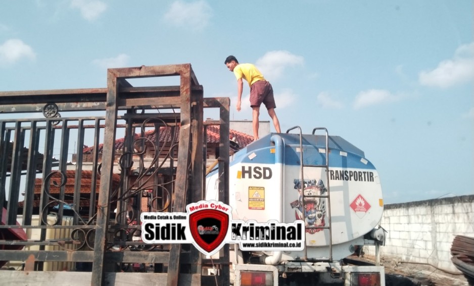 Tim jurnalis langsung mendekati lokasi tempat mobil tengki tersebut parkir tepat di depan teras rumah warga milik Jaya Etika Teknik selaku penerima BBM solar tersebut.