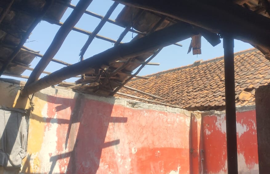 Atap rumah milik Dede Uningsih (58) warga Desa Sutawinangun, RT 03, RW 07, Kecamatan Kedawung, Kabupaten Cirebon, Jawa Barat, mengalami ambruk. (20/7/2024)