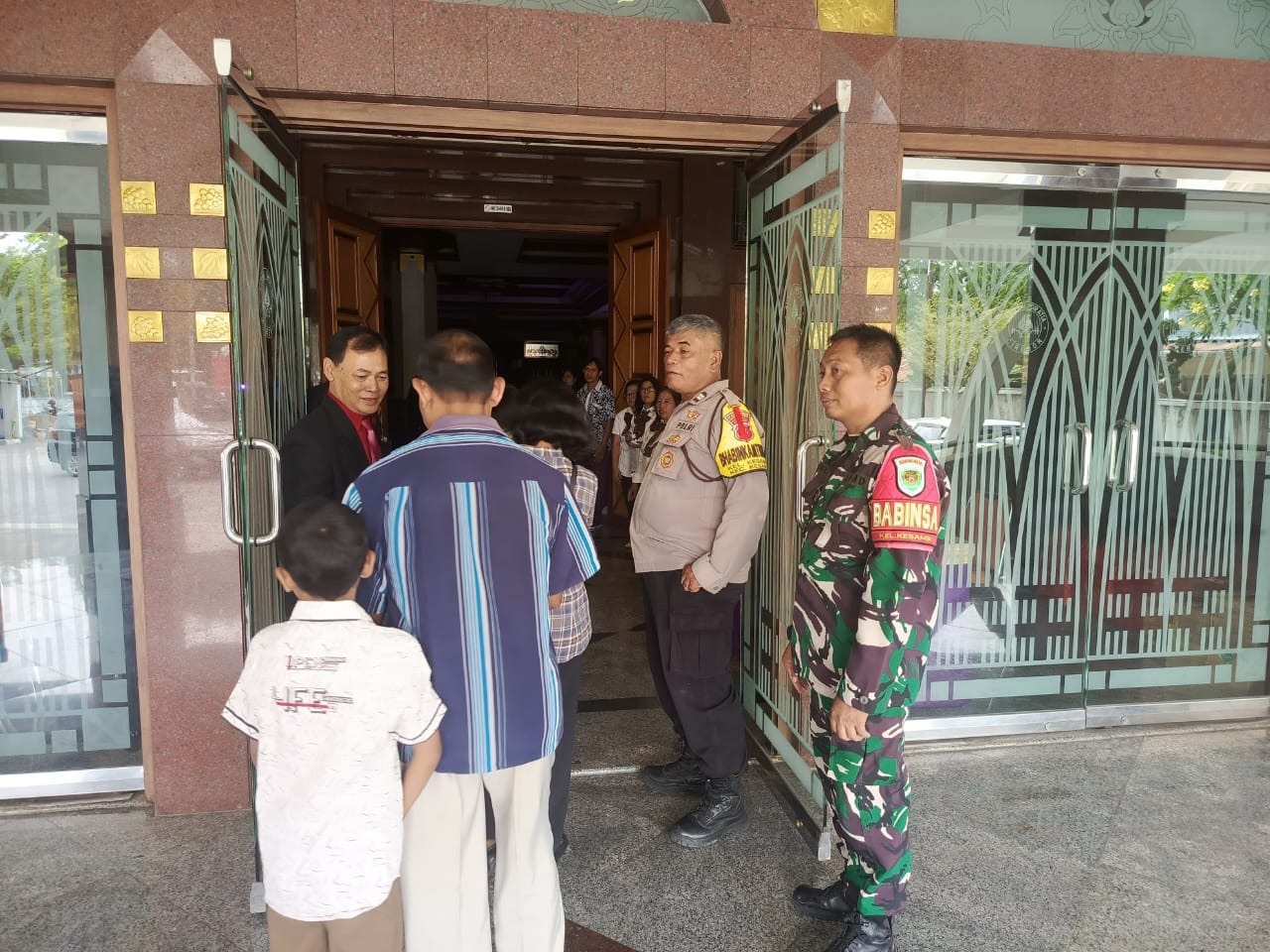 Koordinasi dengan Pengurus Gereja, Babinsa dan Bhabinkamtibmas berkoordinasi dengan pengurus gereja untuk memastikan bahwa seluruh rangkaian ibadah berjalan dengan lancar dan sesuai dengan protokol keamanan.