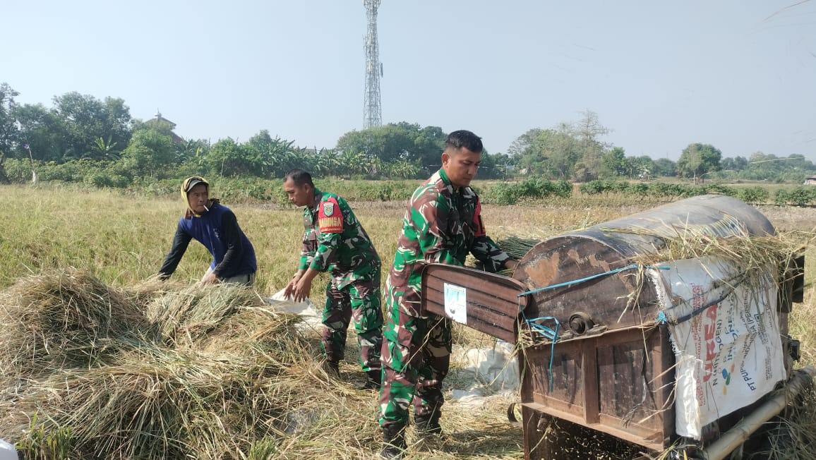 “Kami sengaja ikut turun kelapangan, berharap bisa membantu petani dalam melaksanakan panen padi saat ini.” tutur Serda Asep.