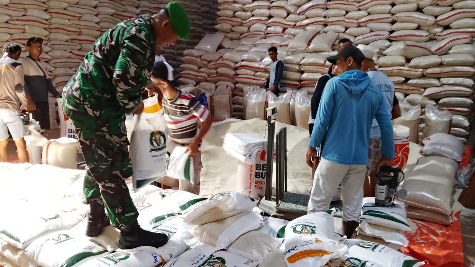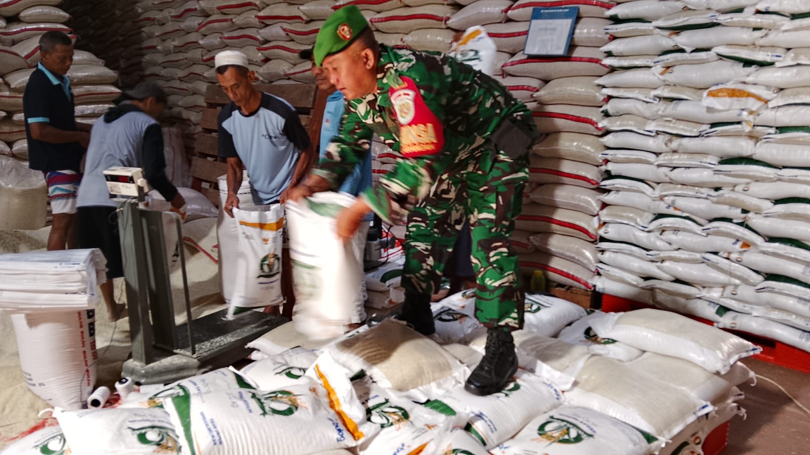 KOTA CIREBON, sidikkriminal.co.id – Babinsa Kelurahan Larangan, Koramil 1402/Harjamukti, Sertu Feri Suswanto, melaksanakan kegiatan monitoring terhadap proses rebagging (pengemasan ulang) beras medium di Gudang Bulog Larangan yang berlokasi di Jalan A. Yani By pass No. 1, Kota Cirebon. Senin, (21/7/2025). Kegiatan ini merupakan bagian dari persiapan pendistribusian bantuan pangan kepada masyarakat penerima manfaat melalui Program Bantuan Pangan Pemerintah Tahun 2025.