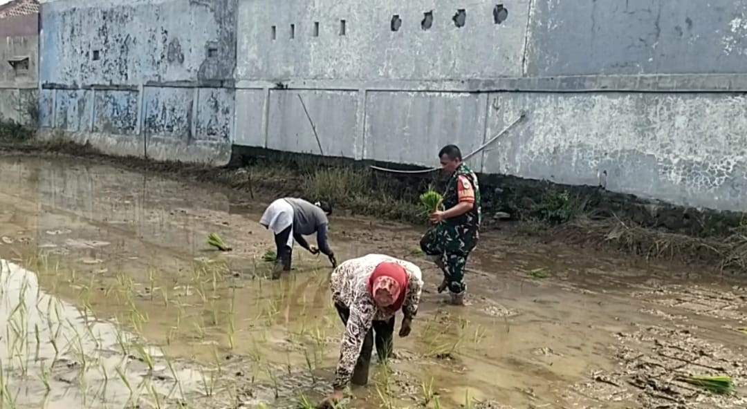Babinsa Kelurahan Drajat Turun ke Sawah, Dukung Petani Tanam Padi, Sukseskan Swasembada Pangan Nasional