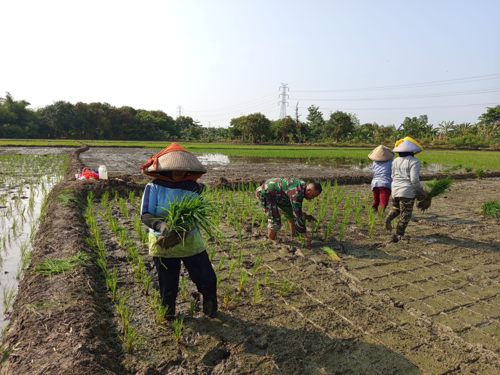 Babinsa Larangan Sertu Feri Suswanto turun ke sawah, membantu menanam padi jenis Infari 33 bersama anggota Kelompok Tani Sipadu Sejahtera milik Bapak Karim, dengan luas lahan sawah garapan 1,5 H tersebut dalam rangka turut mensukseskan dan memaksimalkan Program Ketahanan Pangan Nasional.