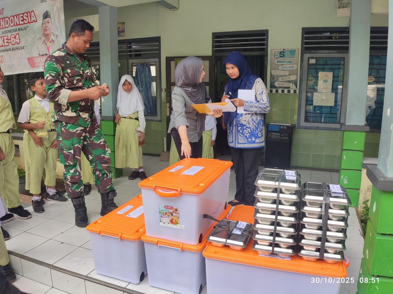 Kehadiran Babinsa dalam kegiatan ini bertujuan memastikan proses pembagian berjalan aman, tertib, dan sesuai sasaran. Serda Sukarman melakukan pemantauan langsung sekaligus membantu mengoordinasikan jalannya pendistribusian agar setiap siswa mendapatkan paket makanan secara merata.