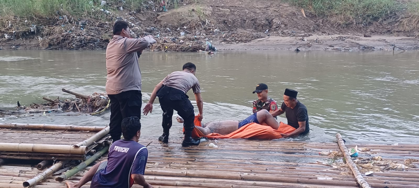 Kedua korban ditemukan di aliran Sungai Cisanggarung dalam keadaan meninggal dunia.