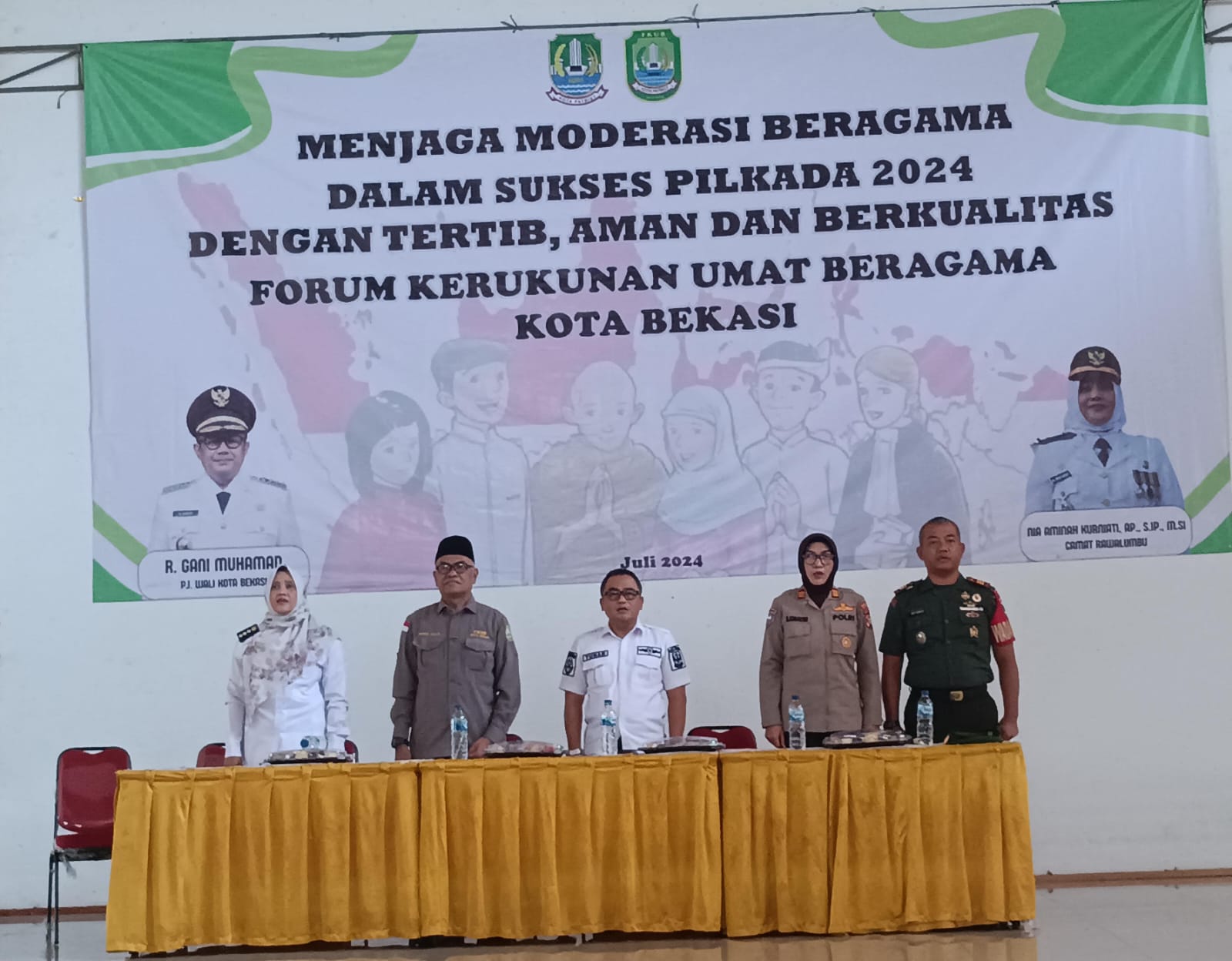 BEKASI, sidikkriminal.co.id – Dalam rangka Sosialiasi PBM dan Sosialisasi FKUB dengan tema “Menjaga Moderasi Beragama Dalam Sukses Pilkada 2024 Dengan Tertib, Aman dan Berkualitas Forum Kerukunan Umat Beragama Kota Bekasi” yang diselenggarakan di Gedung Kesenian Kelurahan Bojong Menteng. (10/07/2024)