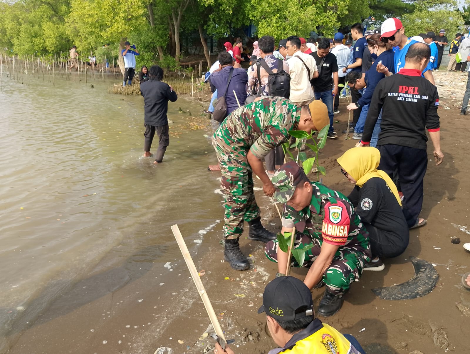Bertempat di pantai Kejawanan wilayah RW.05 / Kejawanan Kelurahan Pegambiran, Kecamatan Lemahwungkuk, Kota Cirebon, Danramil 1403 /Lemahwungkuk beserta Babinsanya turut hadir dalam Gerakan menanam 10.000 pohon mangrove yang digelar oleh Pemerintah Kota Cirebon dalam rangka memperingati hari Mangrove Sedunia. pada hari ini Jum’at, (26/07/2024).