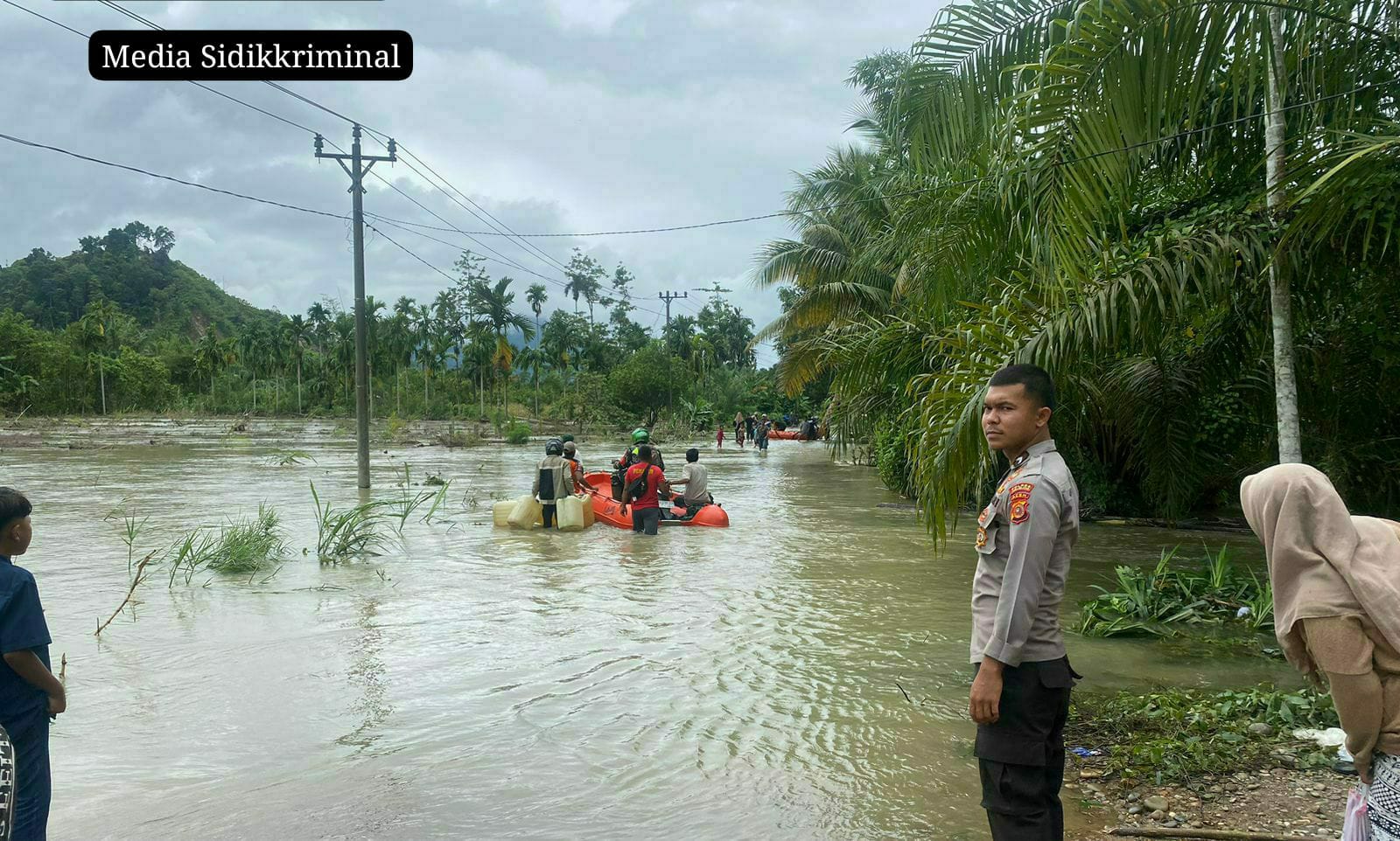 ACEH SELATAN, sidikkriminal.co.id – Tingginya curah hujan yang melanda wilayah Kluet Tengah akhir-akhir ini mengakibatkan meluapnya Sungai Kluet, merendam pemukiman warga di Desa Jambo Papan dengan kedalaman air mencapai hingga 1 meter. Polsek Kluet Tengah, di bawah Polres Aceh Selatan, terus melakukan pemantauan intensif di lokasi bencana banjir tersebut pada Minggu (13/10/2024).
