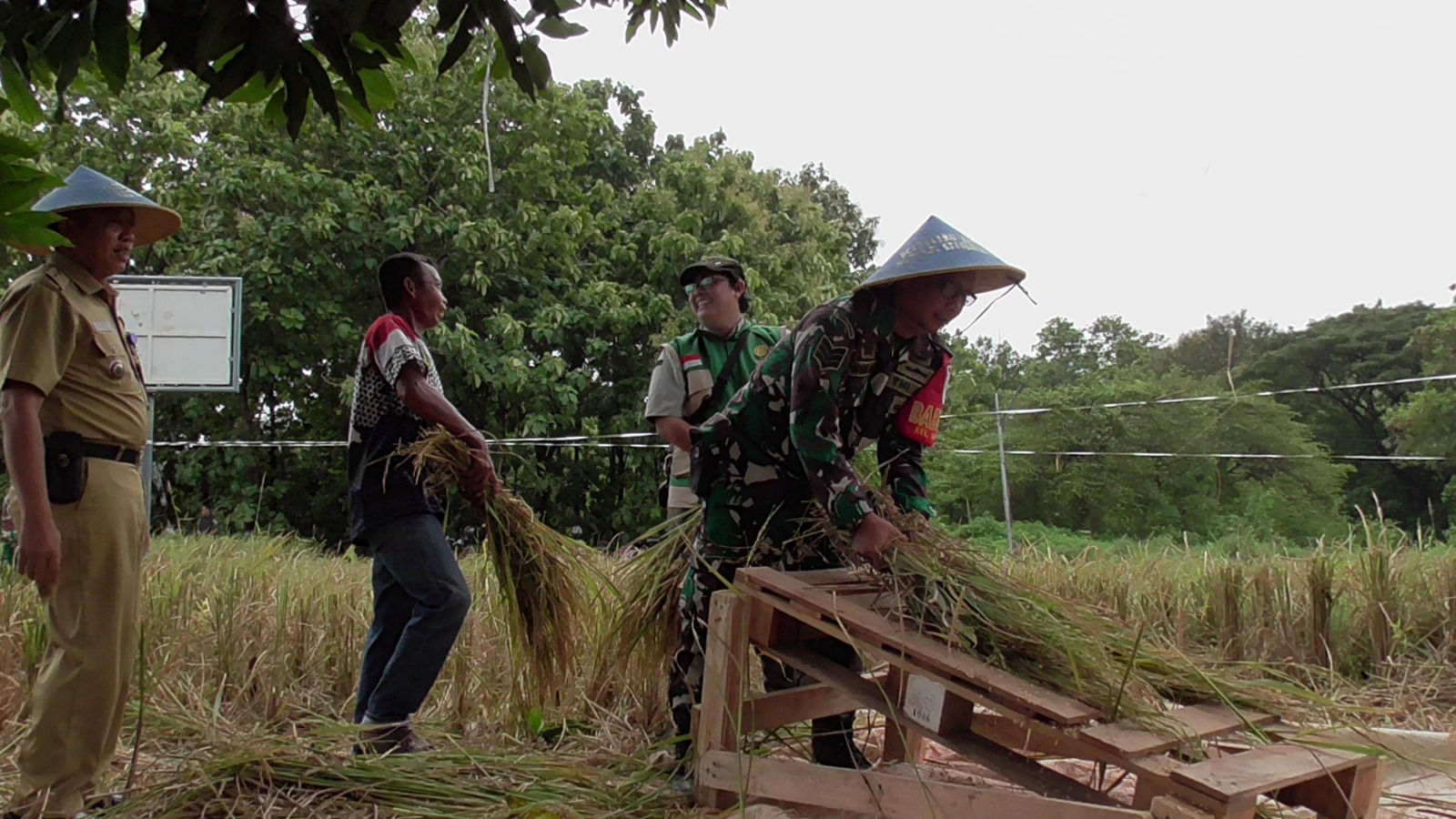 Pada pelaksanaan panen saat ini, lahan yang dipanen seluas 2,5 hektare dengan jenis padi Impari 49.