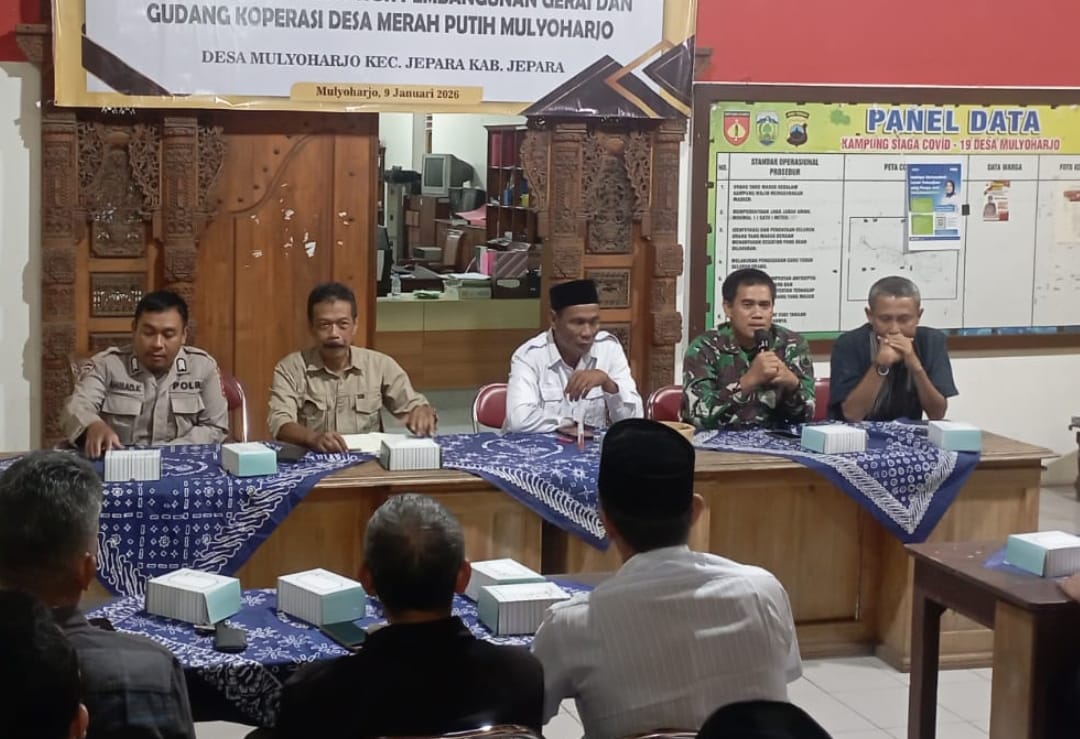 JEPARA, sidikkriminal.co.id – 10-01-2026 – Danramil 01/Jepara Kapten Inf Taufik Mawardi, S.H., M.H., bersama Babinsa Desa Mulyoharjo Serda Suhartono menghadiri kegiatan Musyawarah Desa (Musdes) penetapan dan penggunaan lahan untuk pembangunan Gedung Koperasi Desa Kelurahan Merah Putih (KDKMP) di Aula Desa Mulyoharjo, Kecamatan Jepara, Kabupaten Jepara, pada Jumat malam (9/1).