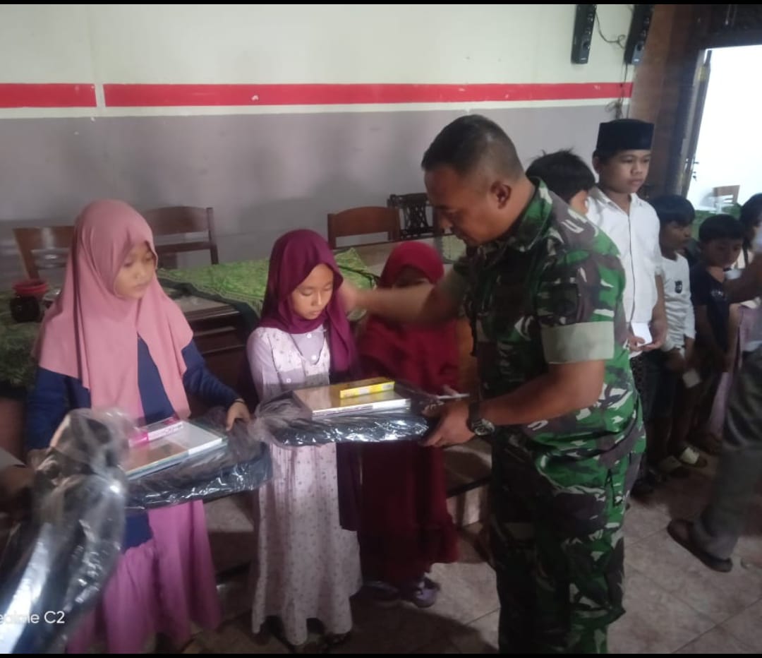 Danramil 03/Batealit Dampingi Pemberian Bantuan Perlengkapan Sekolah dan Santunan di Desa Mindahan