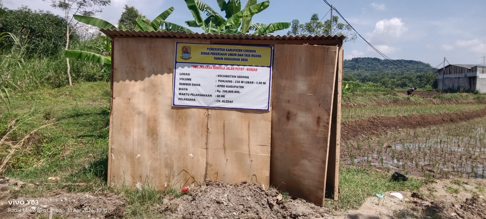 CIREBON, sidikkriminal.co.id – Pengerjaan Jalan Putat–Koreak di Kecamatan Sedong, Kabupaten Cirebon, menuai sorotan. Proyek yang bersumber dari APBD Kabupaten Cirebon Tahun Anggaran 2026 dengan nilai mencapai Rp 290 juta itu diduga tidak sesuai dengan spesifikasi Pekerjaan tersebut dilaksanakan oleh CV. ALZDAF pada Selasa (13/4/2026).