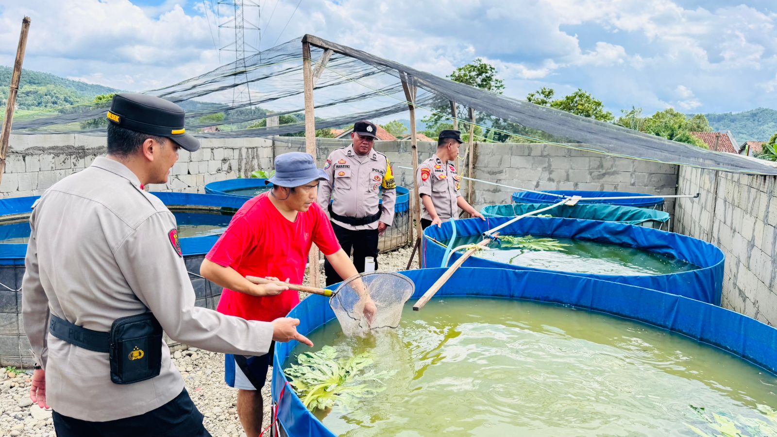 Dukung Ketahanan Pangan, Kapolsek Paguyangan Sambangi Kelompok Peternak Ikan