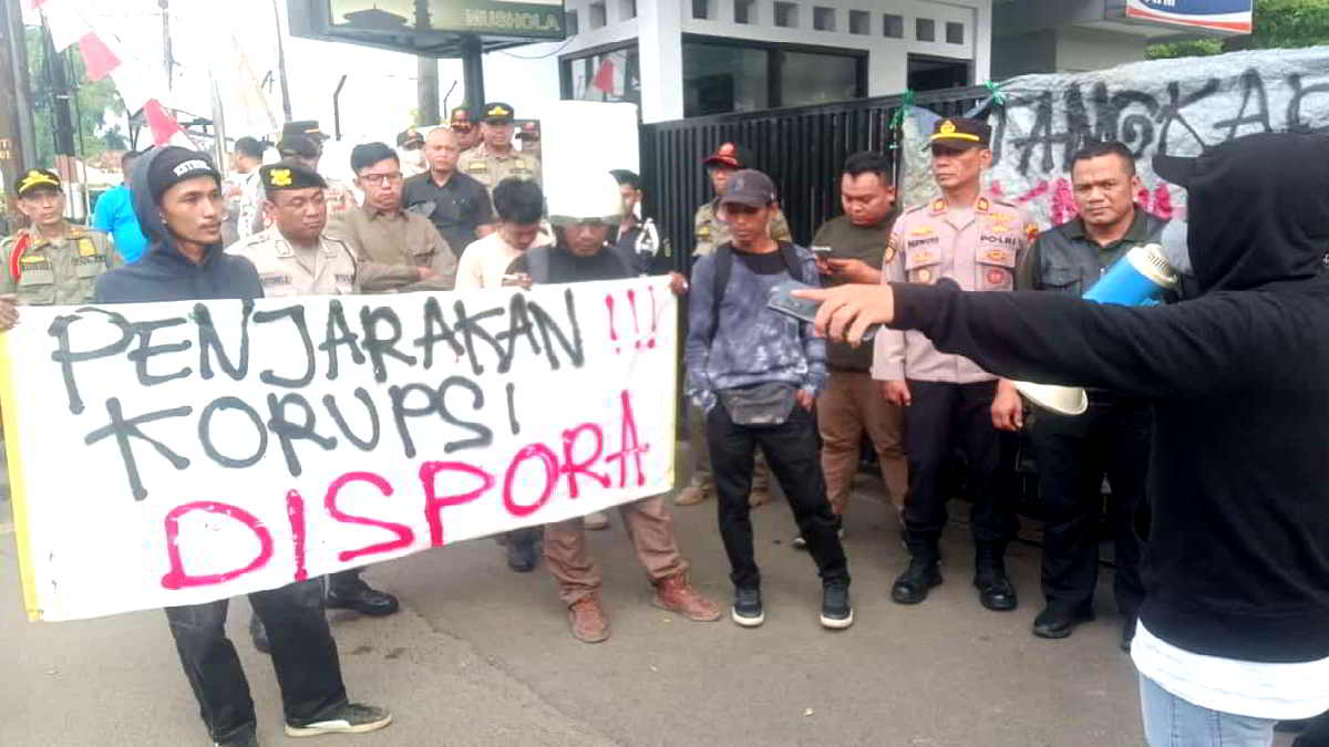 Masa aksi mendesak supaya Aparat Penegak Hukum sesegera mungkin menangkap dan penjarakan Zarkasih, mantan Kepala Dispora Kota Bekasi terkait kasus dugaan korupsi belanja alat olahraga tahun anggaran 2023.