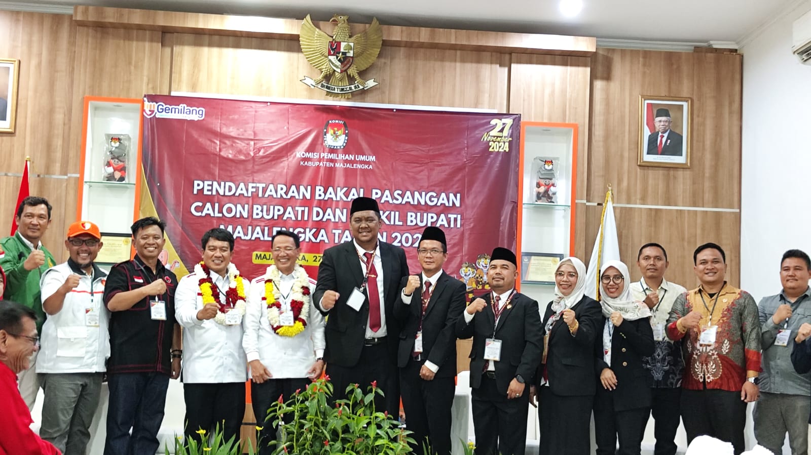MAJALENGKA, sidikkriminal.co.id – Komisi Pemilihan Umum (KPU) Kabupaten Majalengka di tahapan hari pertama pedaftaran pasangan bakal Calon Bupati dan Wakil Bupati. KPU menerima secara resmi berkas pendaftaran pasangan Dr. H. Karna Sobahi, M.Pd., dan Koko Suyoko sebagai calon Bupati dan calon Wakil Bupati Majalengka 2024 yang di usung dari Partai PDIP, PKS, Partai Umat, PBB, Perindo, PKN dan Partai Buruh.
