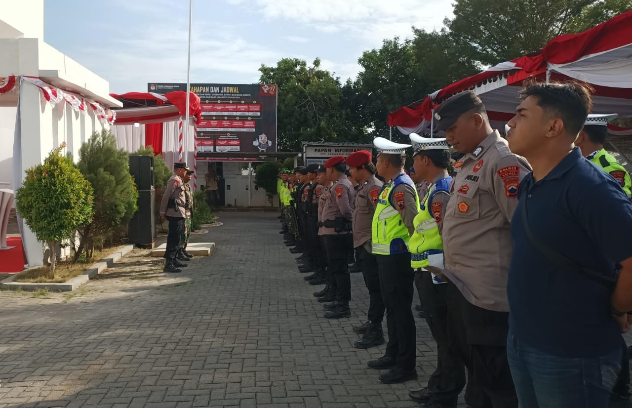 Kegiatan tersebut tampak dalam apel kesiapan pengamanan yang dipimpin oleh Kabag Ops Kompol Suraedi. Selain anggota Polri, juga tampak anggota TNI, Dishub dan Satpol PP dalam apel tersebut.