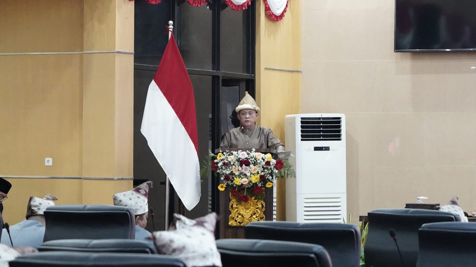 OKU TIMUR – Bupati OKU Timur Ir. H. Lanosin, M.T., M.M. memaparkan pencapaian penting selama 21 tahun terakhir dalam pidato di Sidang Paripurna Istimewa DPRD Kabupaten OKU Timur dalam rangka memperingati HUT Kabupaten OKU Timur ke-21,  di Ruang Rapat Paripurna DPRD Kabupaten OKU Timur,  pada Jumat, (17/01/2025).