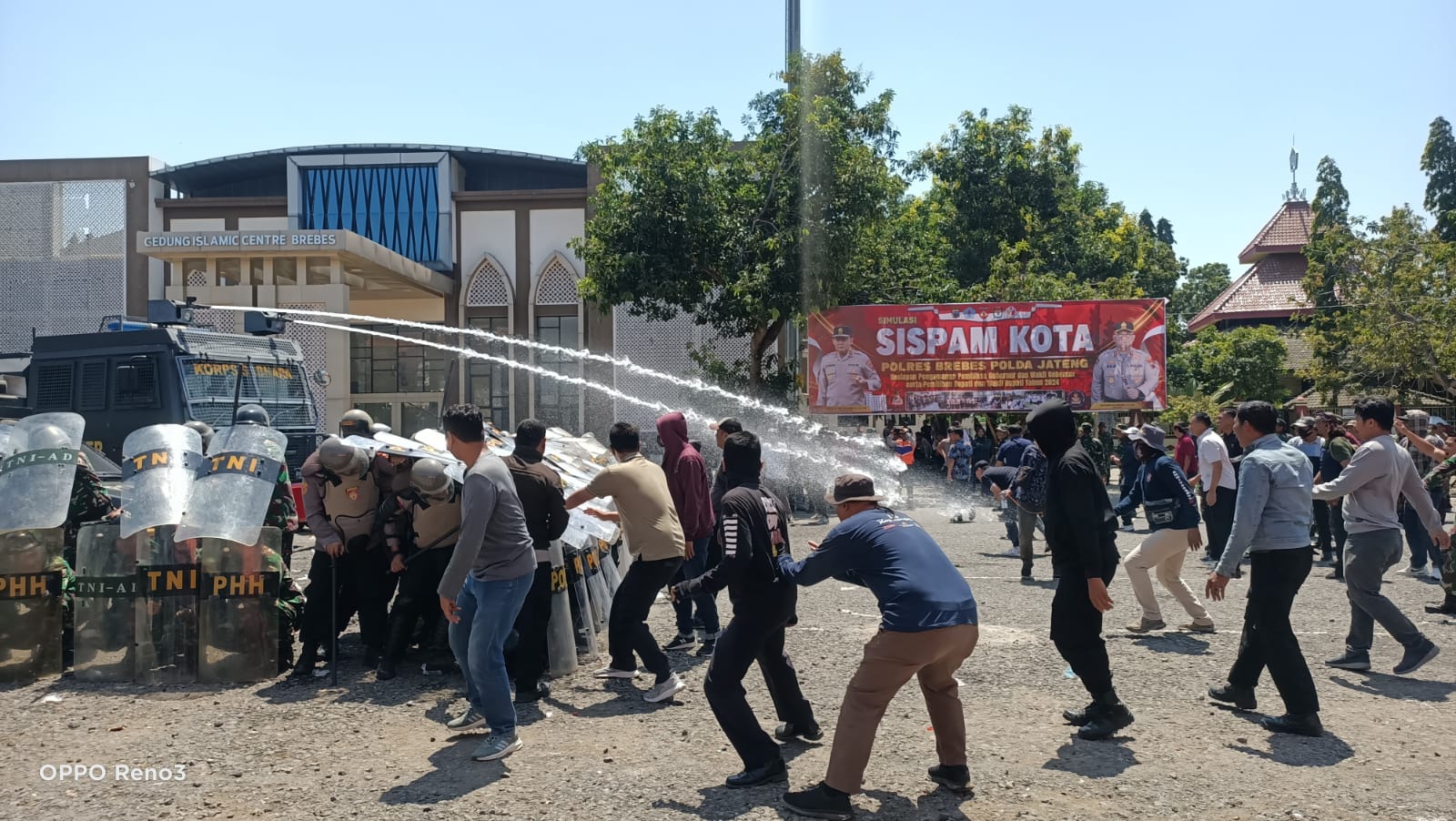 BREBES, sidikkriminal.co.id – Polres Brebes bersama TNI dan dinas terkait lainnya menggelar latihan bersama Sistem Pengamanan Kota (Sispamkota) tingkat Kabupaten Brebes.