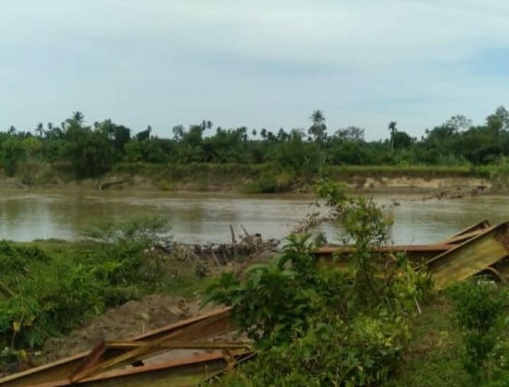 NAGAN RAYA, sidikkriminal.co.id – Jembatan yang ambruk di Desa Pulo Ie, Kecamatan Kuala, Kabupaten Nagan Raya membuat aktifitas perkebunan dan pertanian warga setempat menjadi terhambat.