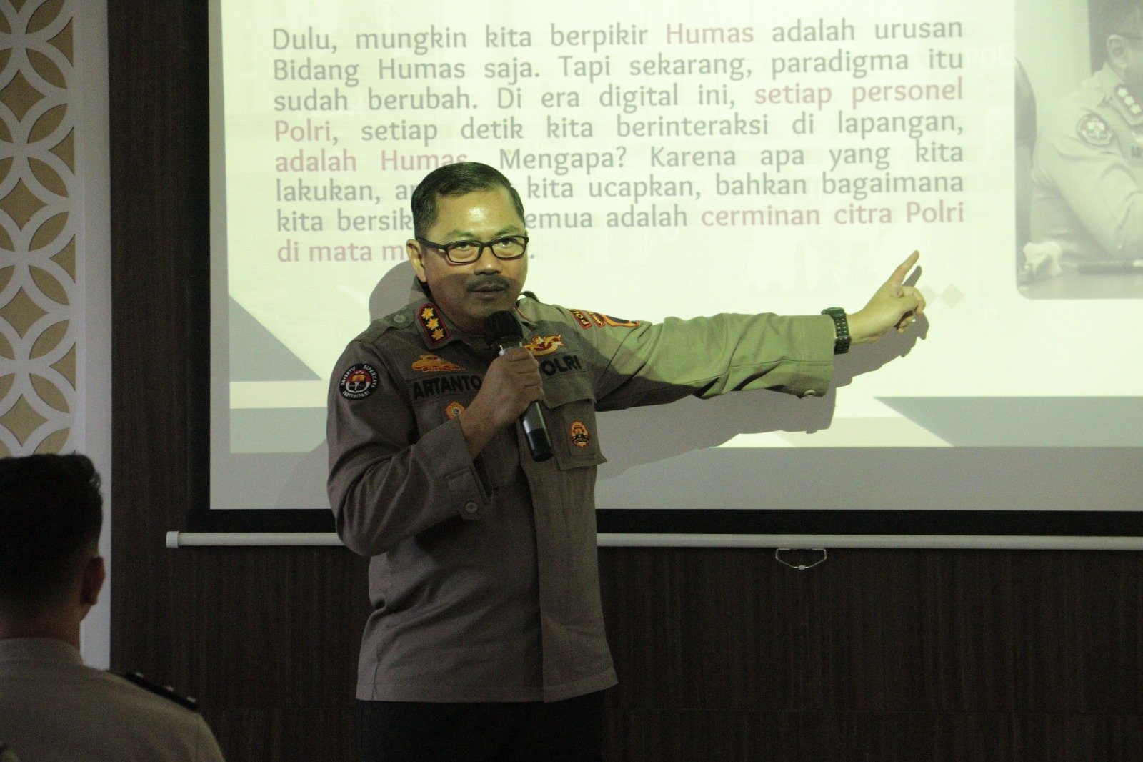 “Dulu, mungkin kita berpikir Humas adalah urusan Bidang Humas saja. Tapi sekarang, paradigma itu sudah berubah. Di era digital ini, setiap personel di mata masyarakat. Polri, setiap detik kita berinteraksi di lapangan, adalah Humas. Mengapa ?, Karena apa yang kita lakukan, apa yang kita ucapkan, bahkan bagaimana kita bersikap, itu semua adalah cerminan citra Polri ,” imbuh Kombes Pol Artanto.