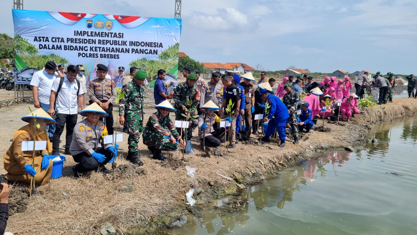 Jenis dalam kegiatan hari ini Polres Brebes menabur benih ikan bandeng 30.000 ekor dan beberapa jenis tanaman yang di tanam.
