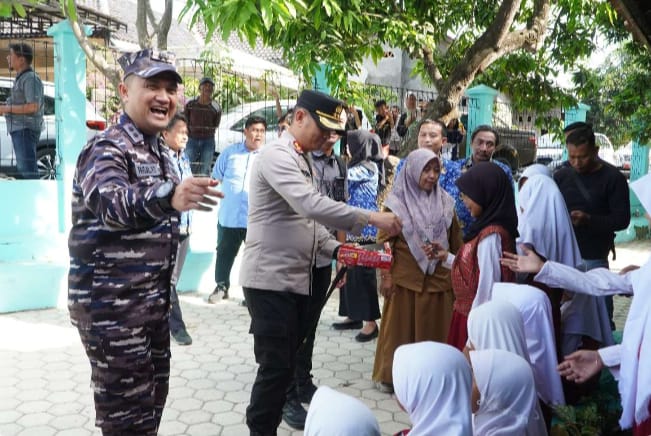 Dalam kunjungan tersebut, para pejabat TNI-Polri itu secara spontan membagikan cokelat kepada siswa-siswi SD sebagai bentuk perhatian dan kebersamaan antara aparat negara dan generasi muda.