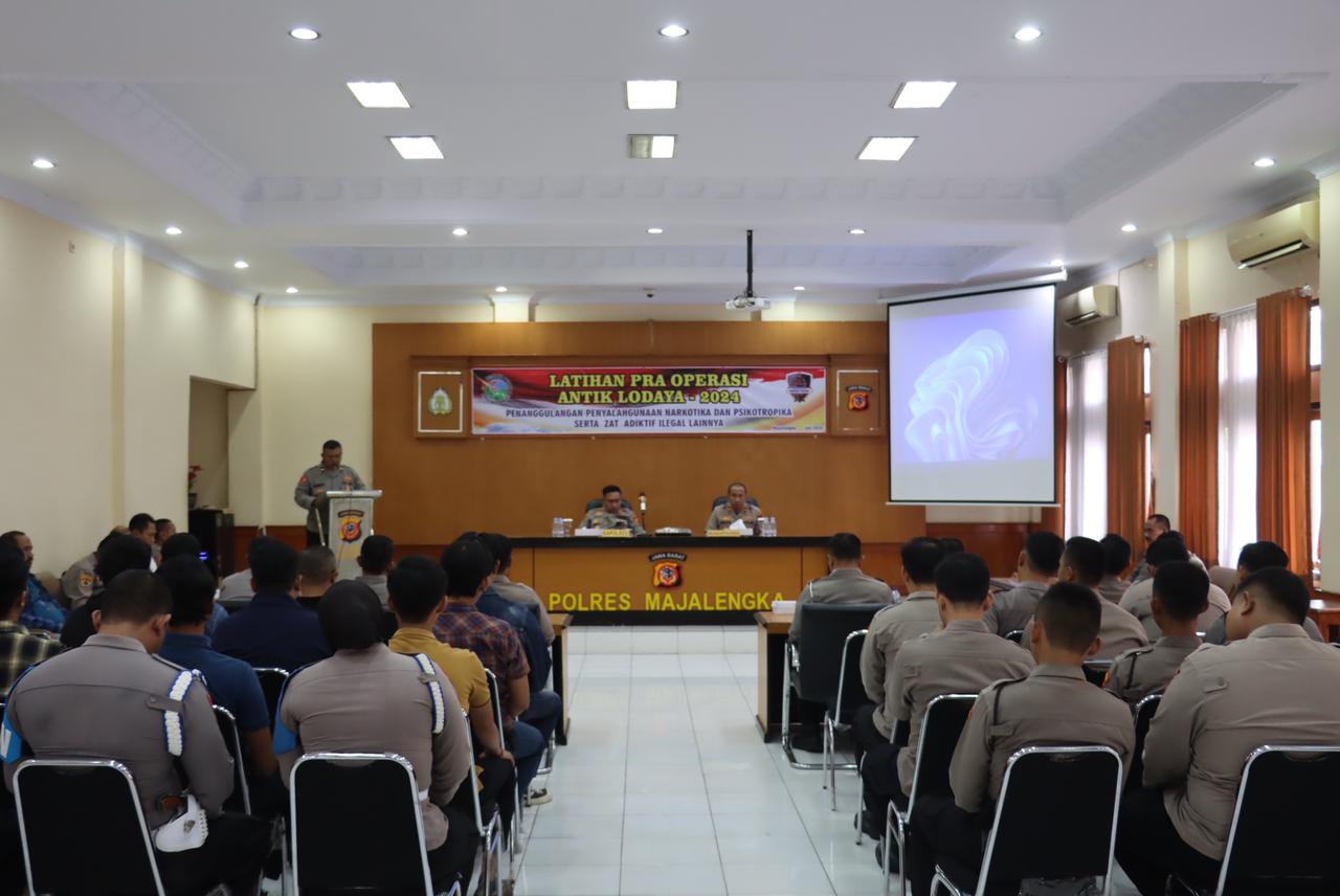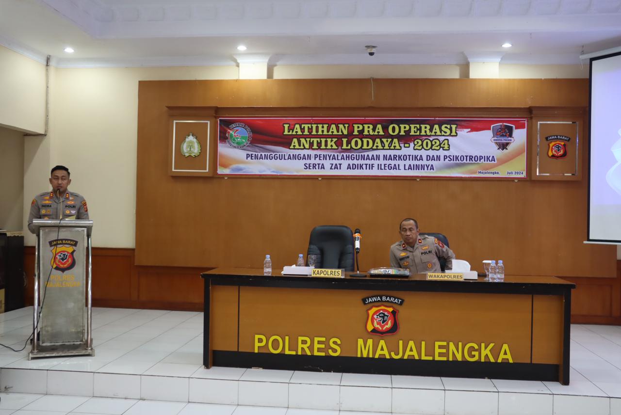 Dalam sambutannya, Kapolres Majalengka, AKBP Indra Novianto, menyampaikan bahwa Pelatihan Pra Operasi Antik Lodaya 2024 ini bertujuan untuk menanggulangi penyalahgunaan narkotika, psikotropika, serta zat adiktif ilegal lainnya guna menciptakan kondisi keamanan dan ketertiban masyarakat (Kamtibmas) yang kondusif di wilayah hukum Polres Majalengka.