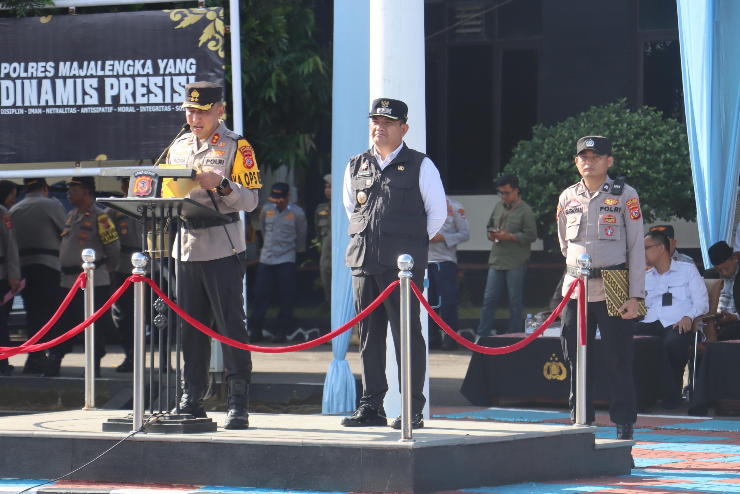 Apel dipimpin langsung oleh Kapolres Majalengka AKBP Indra Novianto, S.I.K., M.H., M.Si., CPHR didampingi Pj. Bupati Majalengka Dr. Dedi Supandi dan membacakan amanat Kapolri Jenderal Listyo Sigit Prabowo.
