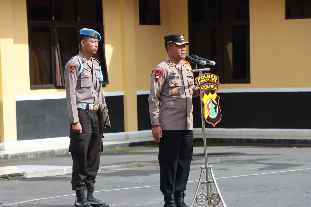Dalam arahannya, Kapolres Puncak Jaya AKBP Kuswara, S.H., S.I.K., M.H., menekankan kepada seluruh jajarannya agar laksanakan tugas dengan baik dan penuh rasa tanggung jawab serta selalu tingkatkan kewaspadaan dan menjaga keselamatan.