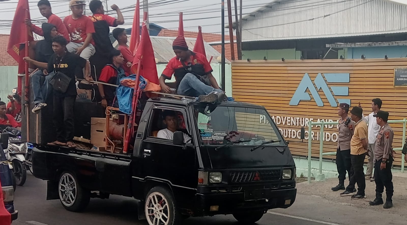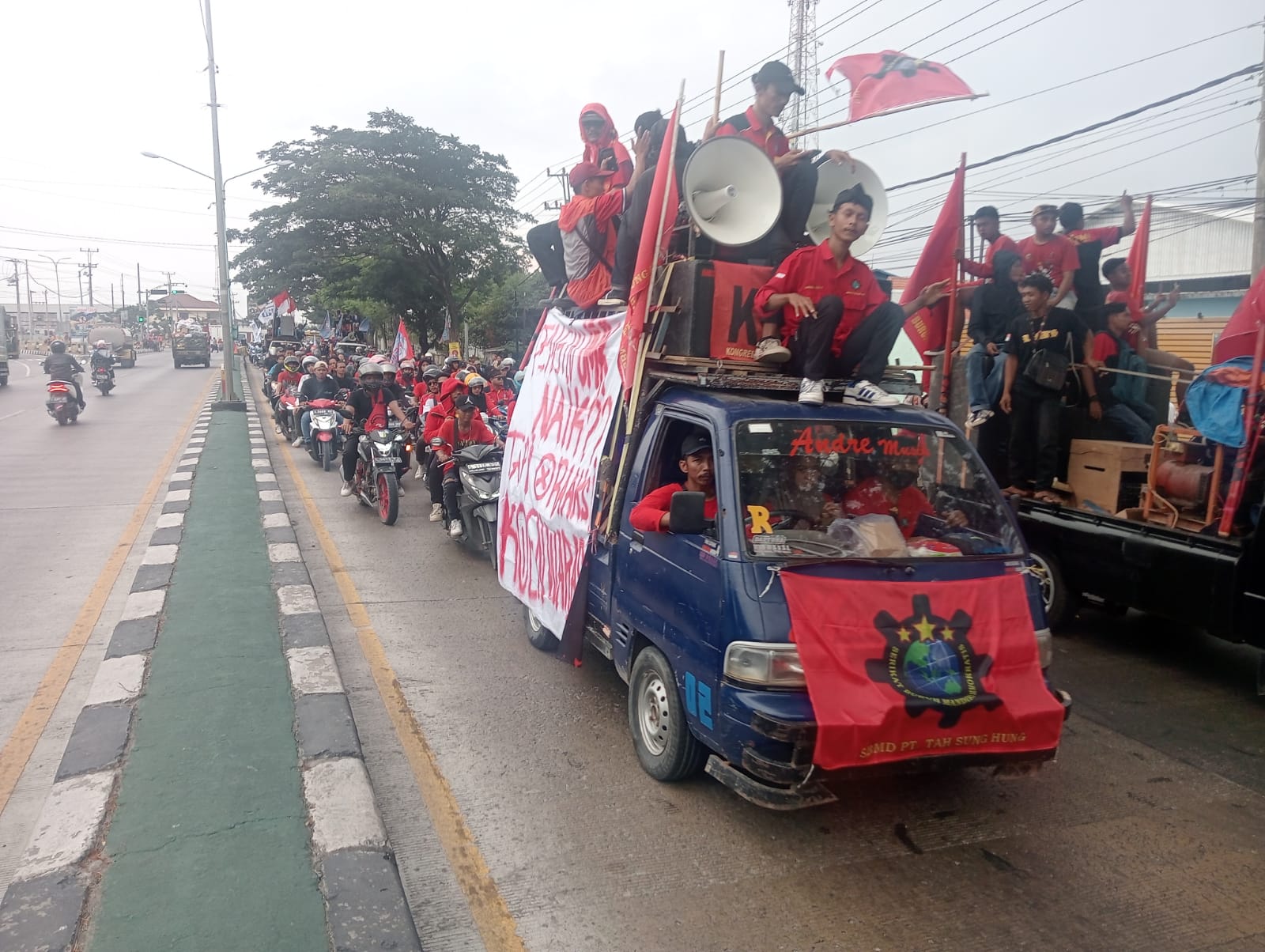 Aksi demo ini diikuti pekerja yang menuntut peningkatan Upah Minimum Regional (UMR) yang dianggap masih terlalu rendah.