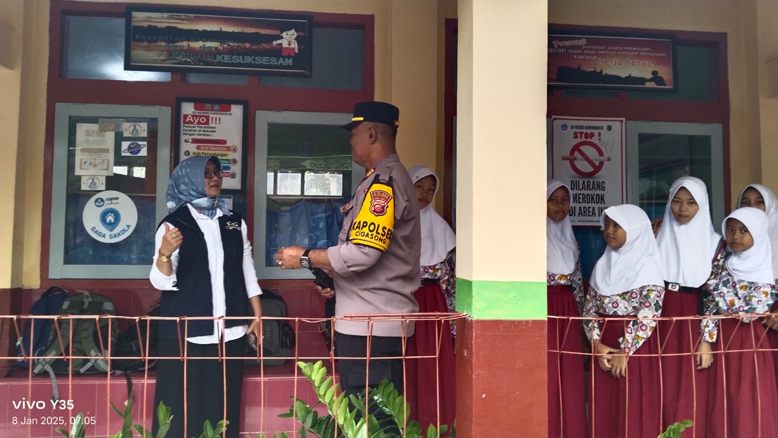 Dalam kesempatan tersebut, Kapolsek Sarjiyo menyapa dengan ramah guru dan siswa-siswi SD Kawunghilir. Selain berbincang akrab, Kapolsek juga menyampaikan pesan-pesan Kamtibmas yang sangat penting bagi anak-anak, terutama terkait dengan masalah kenakalan remaja. Ia mengingatkan para siswa agar tidak terjerumus ke dalam perilaku negatif seperti pergaulan bebas dan tawuran yang bisa merusak masa depan mereka.