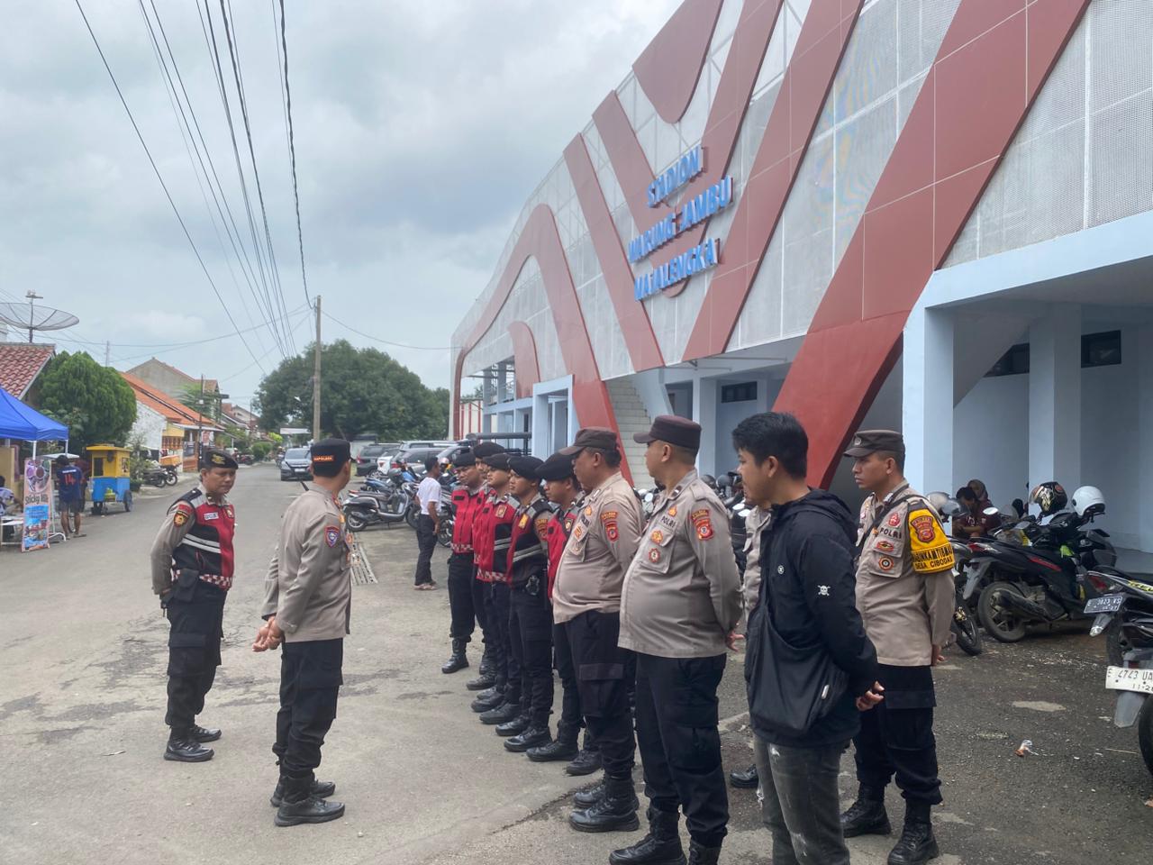 Sejak awal kegiatan, aparat kepolisian disiagakan di titik-titik strategis stadion, pintu masuk, tribun penonton, serta area parkir guna memastikan kegiatan berjalan aman, tertib, dan kondusif.