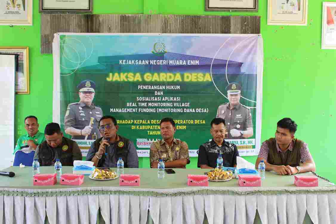 MUARA ENIM, sidikkriminal.co.id – Pada hari Senin, 2 Mei 2025, sekitar pukul 14.00 WIB, bertempat di Kantor Camat Kecamatan Lembak dan Kantor Kecamatan Gelumbang, Kabupaten Muara Enim, Kejaksaan Negeri Muara Enim melalui Kasubsi Seksi Intelijen bersama Jaksa Fungsional dan Staf Intelijen melaksanakan kegiatan Penerangan Hukum dan Sosialisasi Aplikasi Real Time Monitoring Village Management Funding (JAGA DESA).