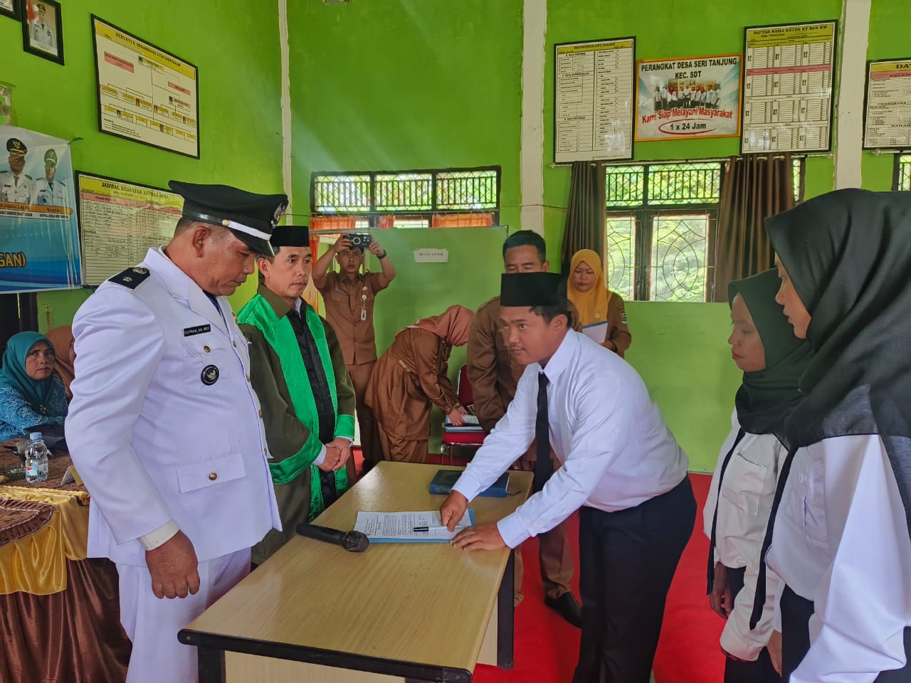 Kepala Desa Seri tanjung menyapaikan pelantikan perangkat desa hari adalah mengisi kekosongan yang mana perangkat desa yang lama Alhamdulillah sudah lulus PPPK dan sudah bertugas di tempat nya masing masing,dan Alhamdulillah juga hari ini saya sudah melantik pengantinya sebanyak tiga orang,pelantikan perangkat desa ini sangatlah penting karna mereka inilah untuk membantu kepela desanya dalam menjalan kan roda kepemerintahan desa seri tanjung ini.