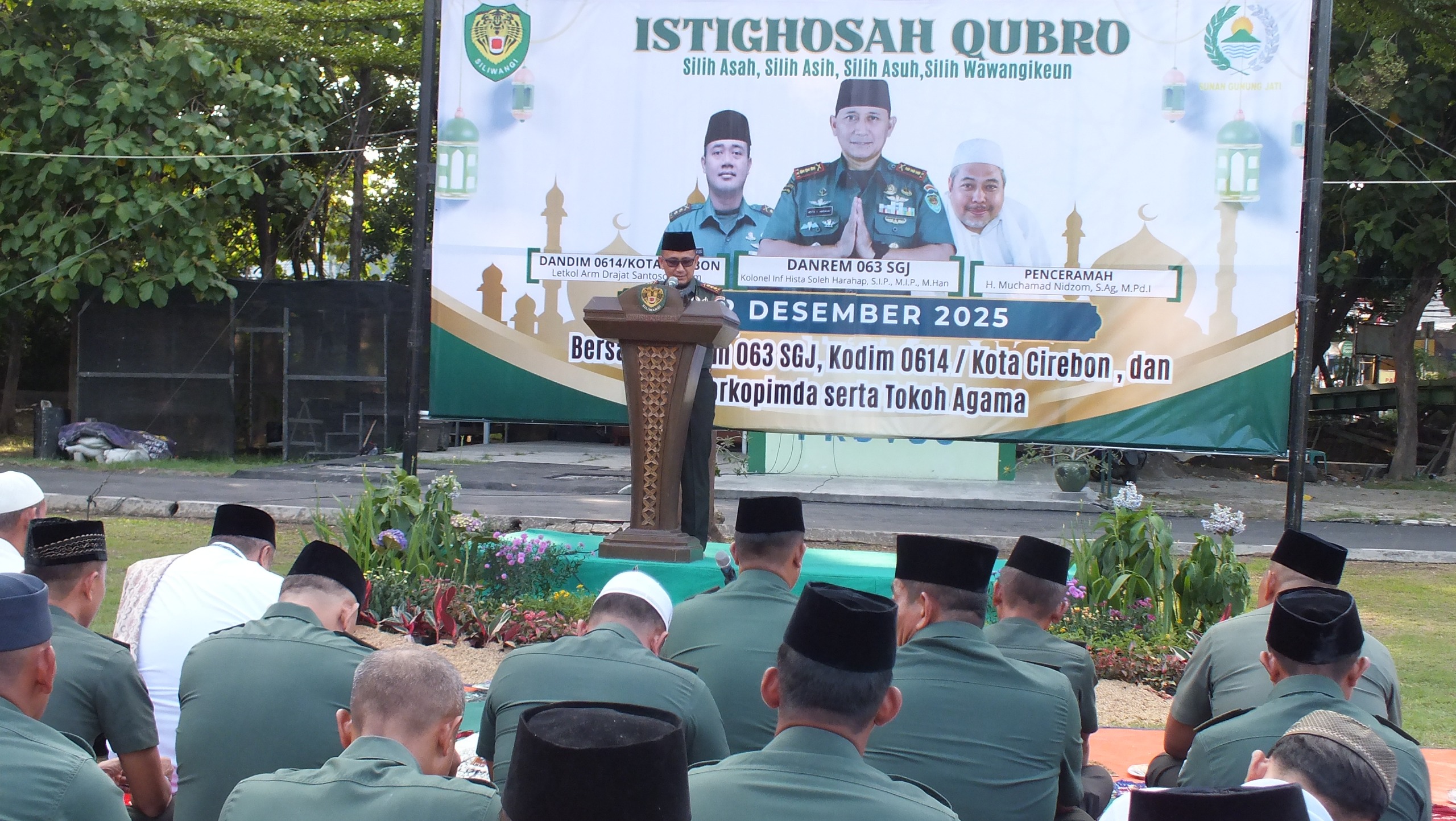 Kegiatan keagamaan ini dihadiri oleh Danrem 063/SGJ beserta jajaran, unsur Forkopimda Kota Cirebon, tokoh agama, Ketua FKUB Kota Cirebon, serta perwakilan personel dari TNI dan Polri.