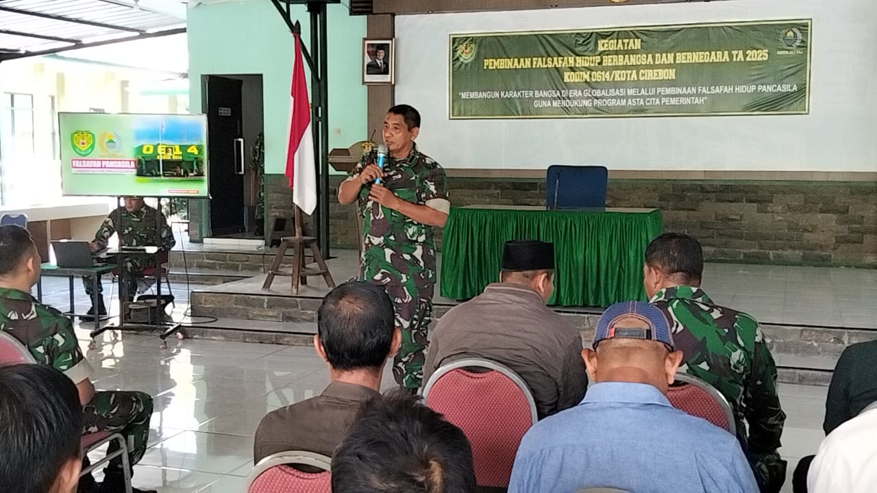 KOTA CIREBON, sidikkrominal.co.id – Kodim 0614/Kota Cirebon menggelar kegiatan Pembinaan Falsafah Hidup Berbangsa dan Bernegara Tahun Anggaran 2025 dengan mengangkat tema “Membangun Karakter Bangsa di Era Globalisasi Melalui Falsafah Hidup Pancasila Guna Mendukung Program Asta Cita Pemerintah” yang bertempat di Pendopo 76 Makodim 0614/Kota Cirebon jalan Pemuda 45 Kota Cirebon. Rabu, (27/8/2025).