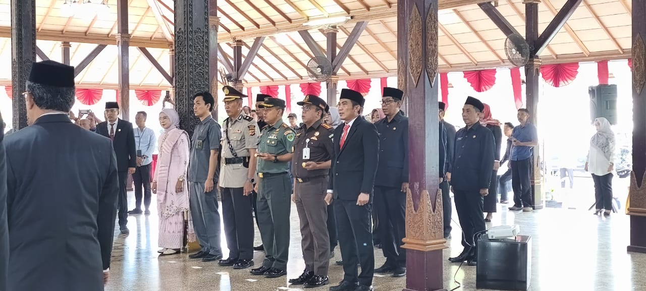 CIREBON, sidikkriminal.co.id – Komandan Kodim 0620/Kabupaten Cirebon, Letkol Inf Mukhammad Yusron, S.A.P, menghadiri acara pengambilan sumpah dan pelantikan pejabat Pimpinan Tinggi Pratama dan Administrator di lingkungan Pemerintah Kabupaten Cirebon, yang dilaksanakan pada hari Rabu, (27/08/2025) di Pendopo Bupati Cirebon.