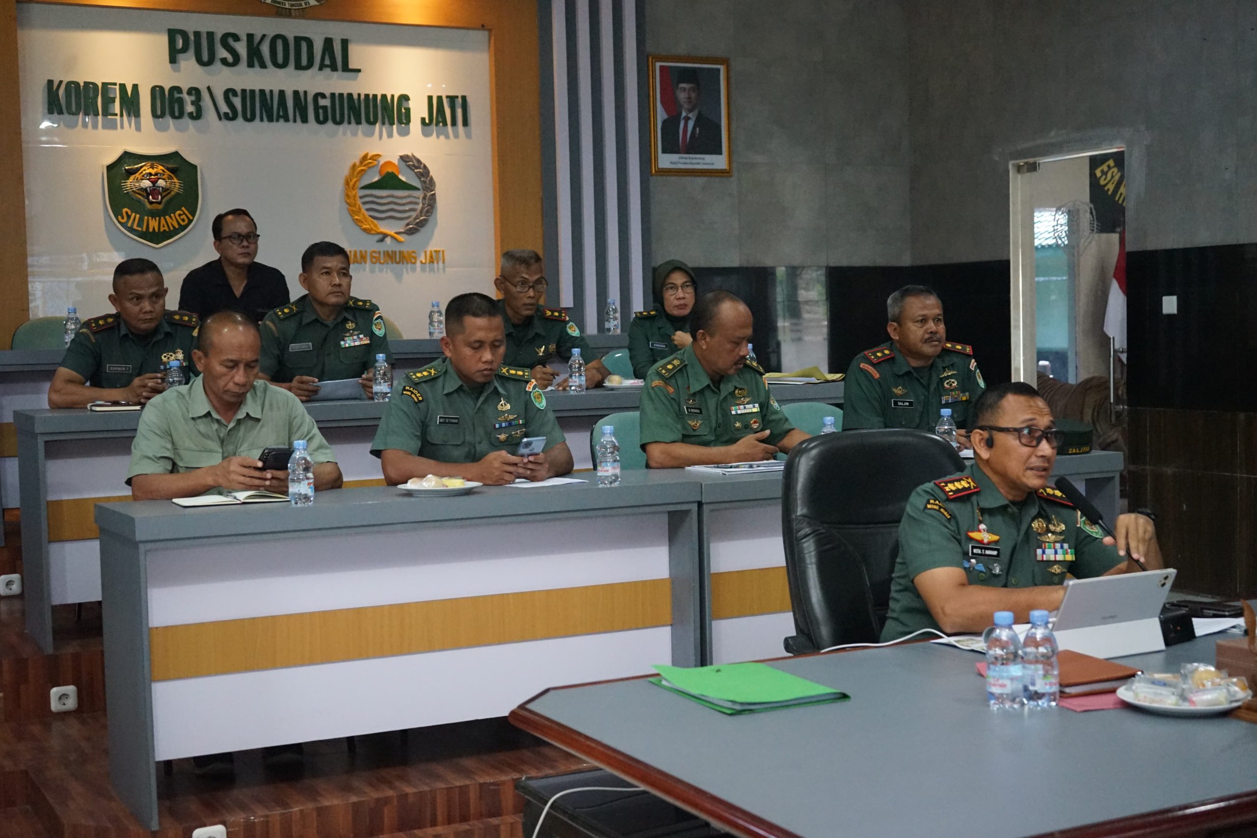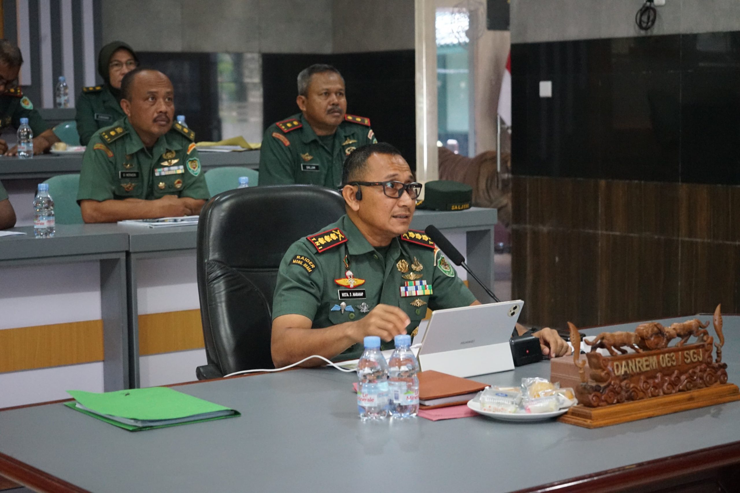 Rapat yang dipusatkan di Puskodal Korem 063/SGJ tersebut diikuti Dandim Jajaran,unsur Forkopimda provinsi hingga kabupaten/kota secara virtual.