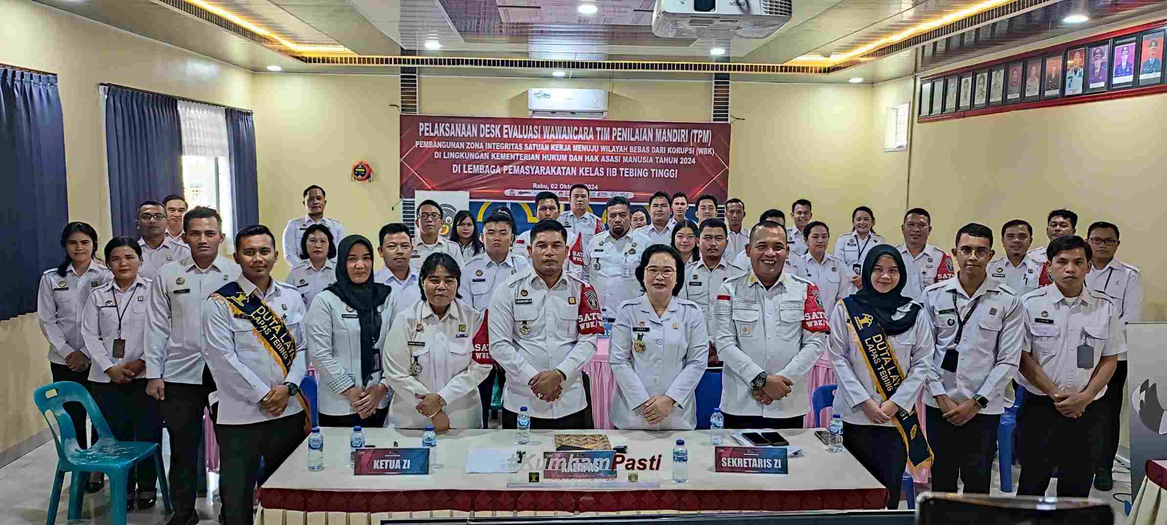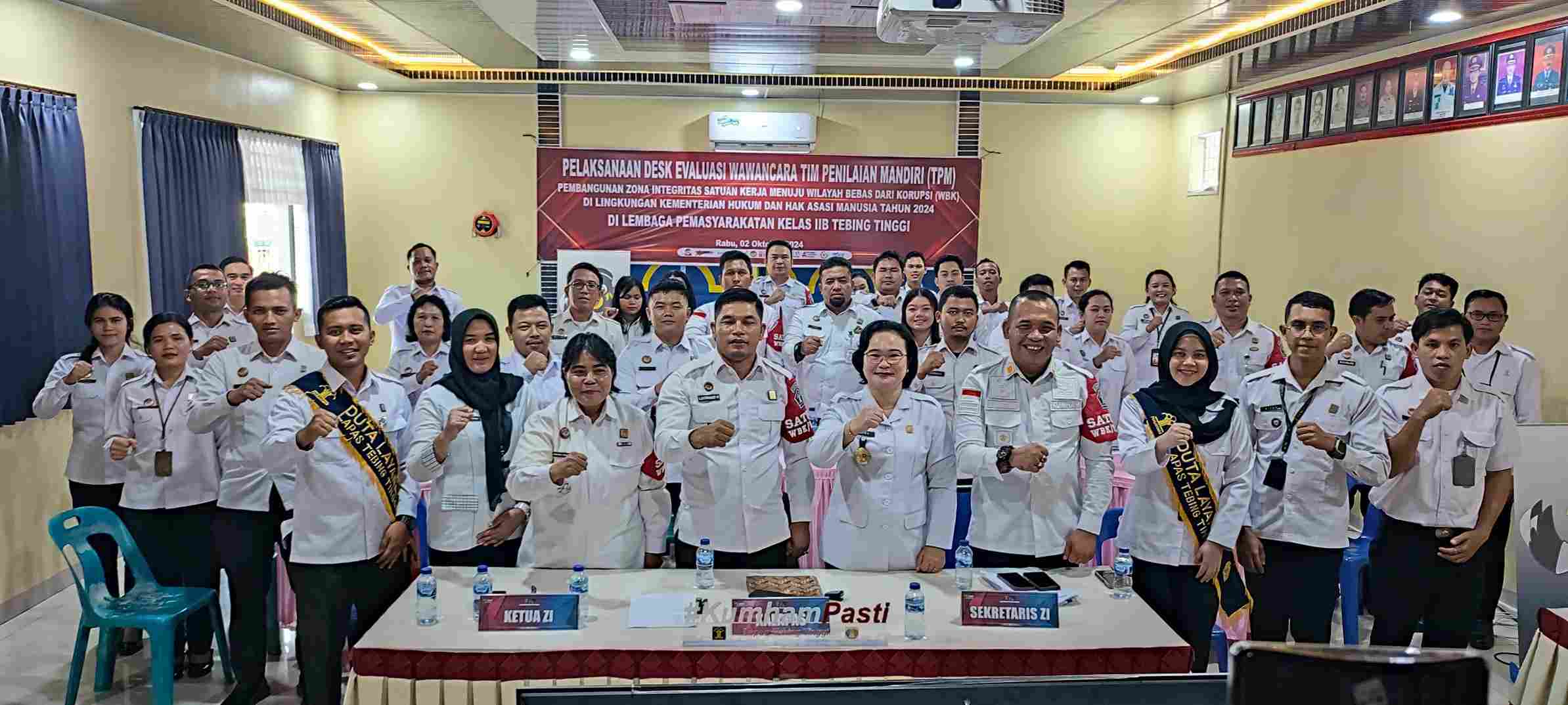 Lembaga Pemasyarakatan (Lapas) Kelas IIB Tebing Tinggi melalui Tim Zona Integritas (ZI) telah sukses dan menyelesaikan desk evaluasi wawancara pembangunan Zona Integritas menuju Wilayah Bebas dari Korupsi (WBK) yang dilaksanakan oleh Tim Penilai Mandiri (TPM) Kemenkumham yang digelar secara virtual di Aula Sasana Tama Lapas. Rabu, (02/10/2024).
