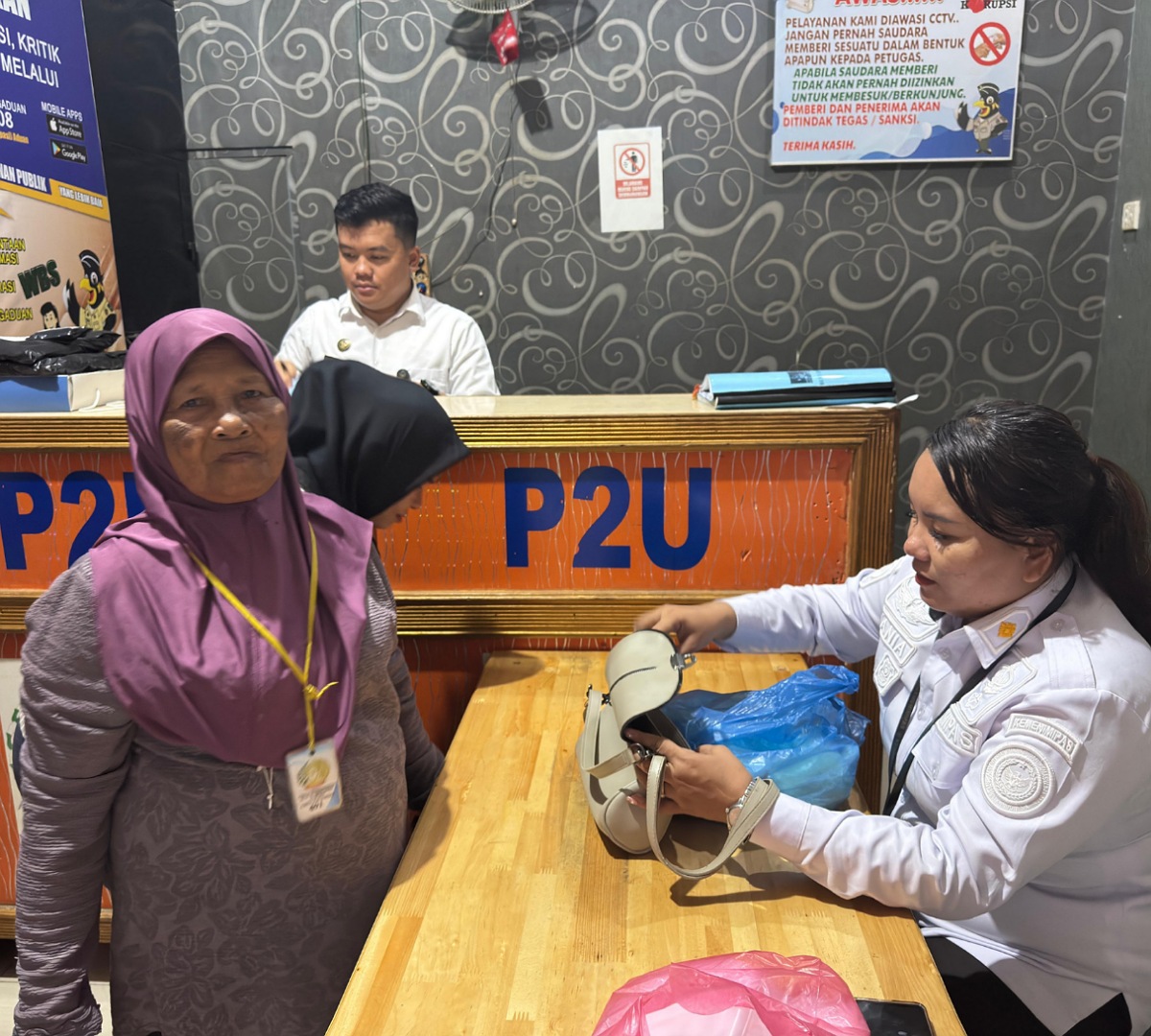 Setelah proses pendaftaran, pengunjung menjalani pemeriksaan badan dan barang bawaan oleh petugas sesuai standar operasional prosedur.