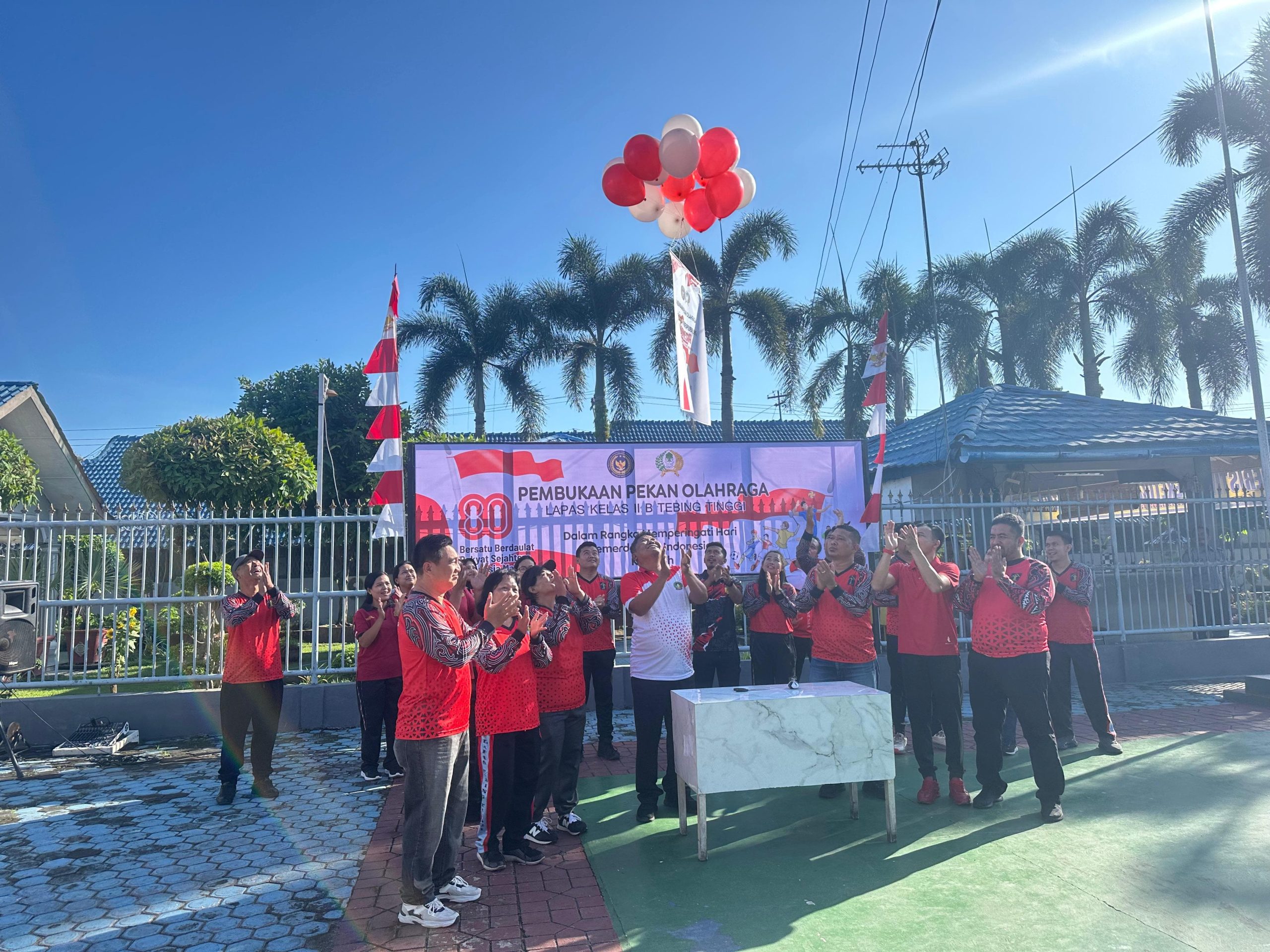 Lapangan utama apel Lapas menjadi pusat kegiatan, dipenuhi dekorasi merah putih yang berkibar indah. Acara dibuka secara resmi oleh Kepala Lapas Kelas IIB Tebing Tinggi Dede Mulyadi, ditandai dengan pelepasan balon ke udara yang melambangkan semangat kemerdekaan, disusul dengan tendangan bola ke gawang sebagai simbol dimulainya seluruh rangkaian perlombaan.