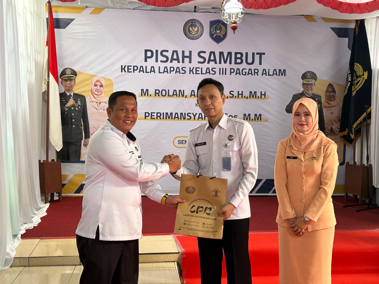 Dalam kesempatan tersebut, dilakukan penandatanganan berita acara serah terima jabatan dan penyerahan memori serah terima dari Kalapas Pagaralam sebelumnya M. Rolan, kepada Kalapas yang baru Perimansyah.