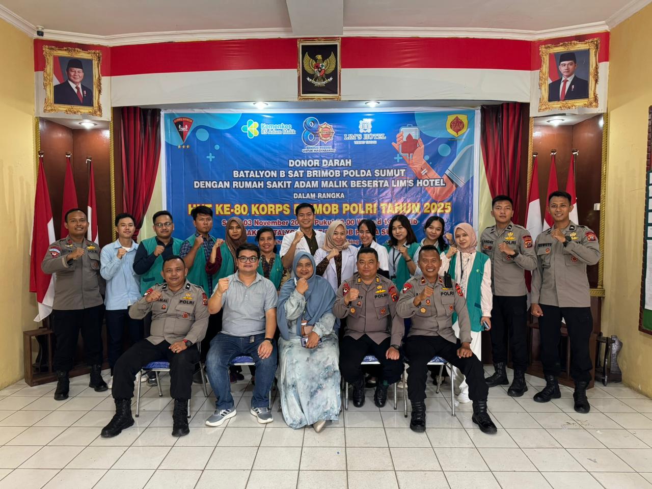 Pelaksanaan donor darah ini dilaksanakan personil Batalyon B Sat Brimob Polda Sumut dan Instansi Forkopimda dalam rangka memperingati HUT Brimob ke-80 sebagai bentuk sinergifitas dan rasa peduli dalam membantu memenuhi kebutuhan bank darah bagi masyarakat yang membutuhkan darah.