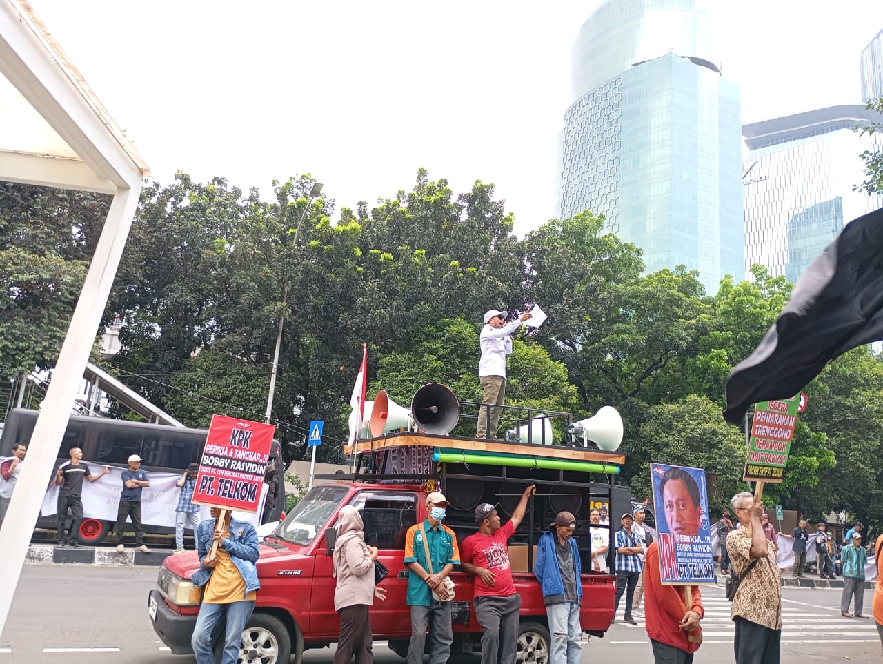 4. Mendesak KPK agar segera menetapkan status Tersangka kepada Sakti Wahyu Trenggono, sebagai aktor intelektual arsitek dan operator penerima aliran dana proyek fiktif PT. Telkom yang merugikan Negara ratusan Milyar Rupiah.