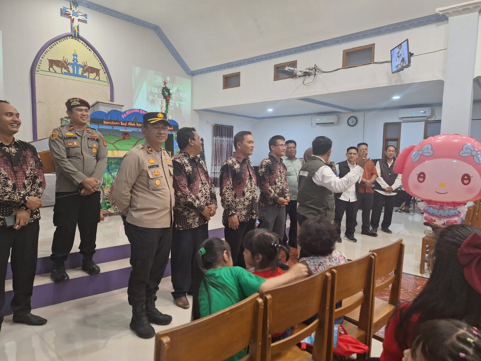 MAJALENGKA, sidikkriminal.co.id -Kapolres Majalengka AKBP Indra Novianto, S.I.K., M.H., M.Si., CPHR., diwakili Wakapolres Majalengka Kompol Asep Agustoni, S.E., M.M., bersama Unsur Forkopimda Majalengka mendukung Perayaan Natal 2024 yang dilaksanakan oleh Persekutuan Kerjasama Gereja-Gereja Kabupaten Majalengka dan Sekolah Minggu PSKG.