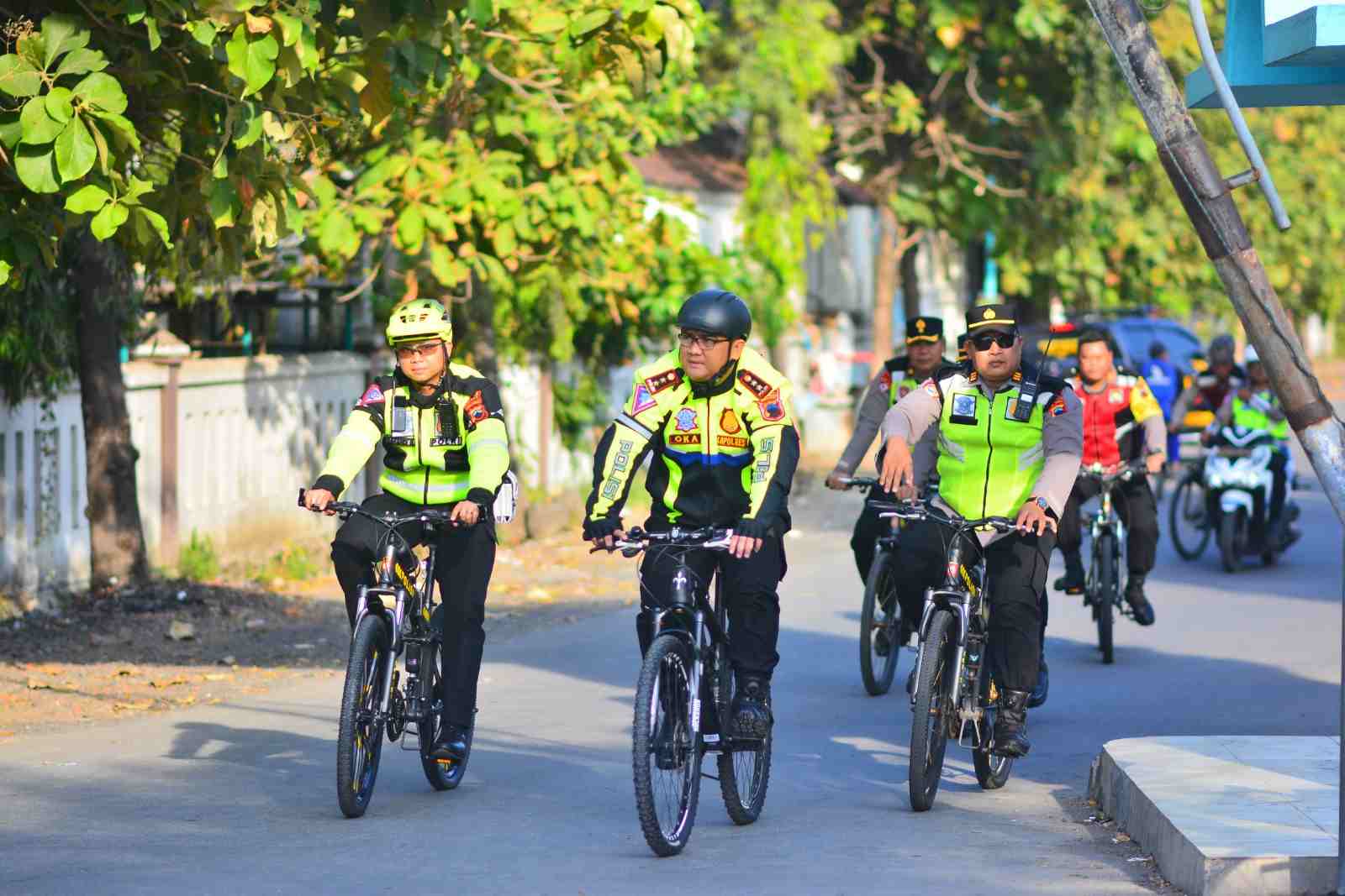 Dengan didampingi sejumlah Perwira, Kapolres Brebes berkeliling menggunakan sepeda melakukan pengecekan terhadap personil yang melaksanakan AG pagi dan tersebar di setiap penggal serta persimpangan jalan di wilayah perkotaan Brebes.